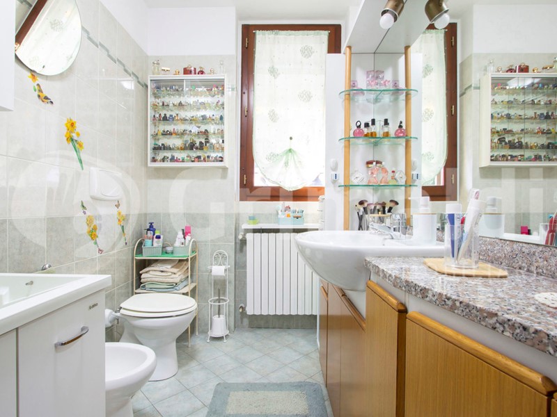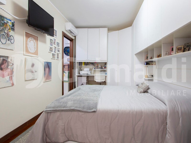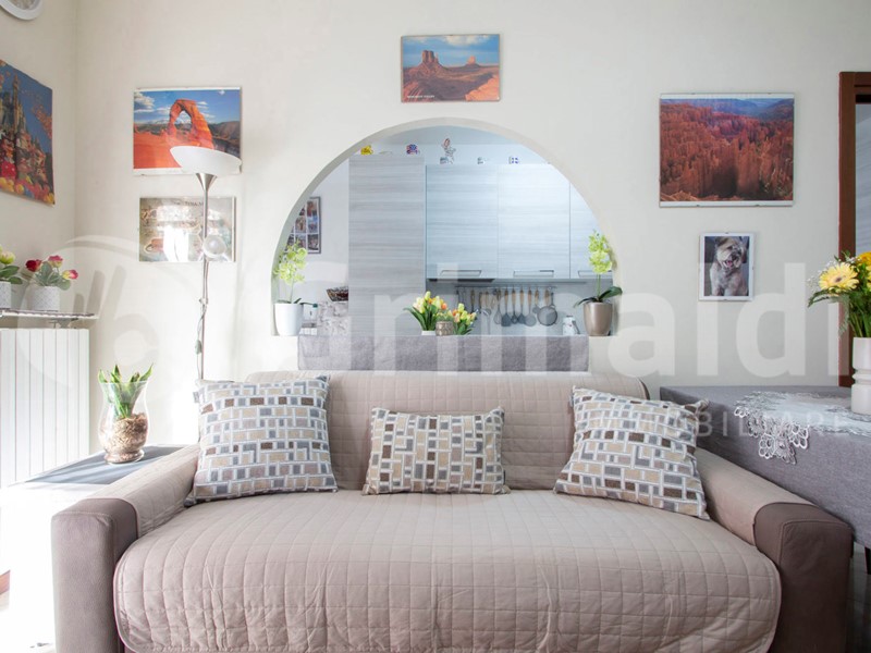Situato al piano terra ha esposizione a ovest nella zona giorno ed è così composto: ingresso in un soggiorno di forma rettangolare molto luminoso e ben fruibile, dal quale si accede al bel giardinetto privato; al giardino si entra anche da una porta finestra della cucina che è abitabile e funzionale. "Casa bella" è completata da un disimpegno che porta alla zona notte dove ci sono una camera da letto matrimoniale ed un servizio igienico. Il 2 locali è dotato di un impianto di riscaldamento termoautonomo, di infissi in legno con doppio vetro, di persiane in legno, inferriate antintrusione con chiusura a pacchetto e i pavimenti sono in ceramica in zona giorno, mentre parquet nella camera da letto. "Casa bella" è dotata di una cantina ed un box di 22 mq al piano interrato al costo di 17.500,00 euro.