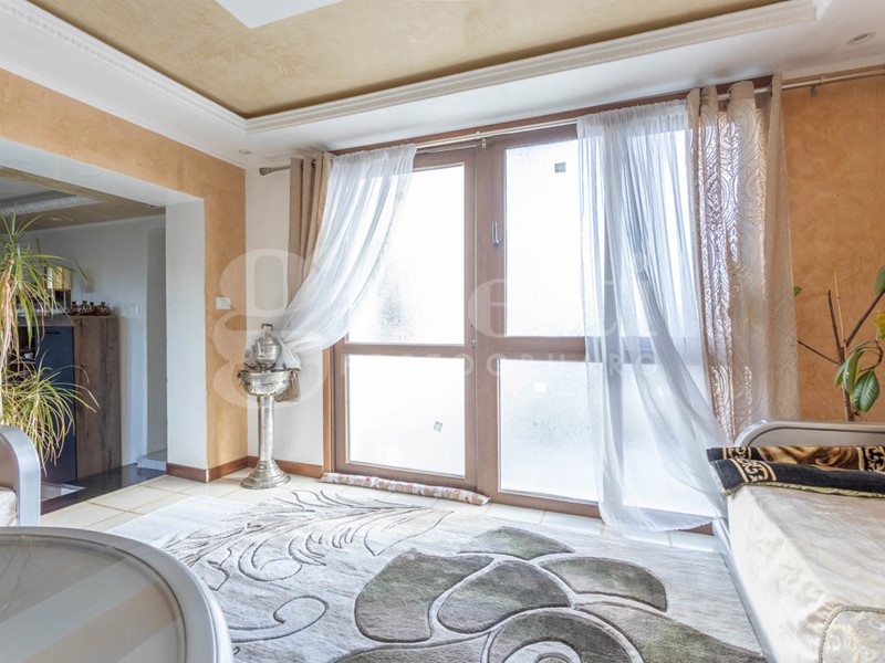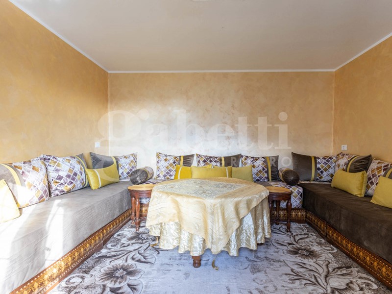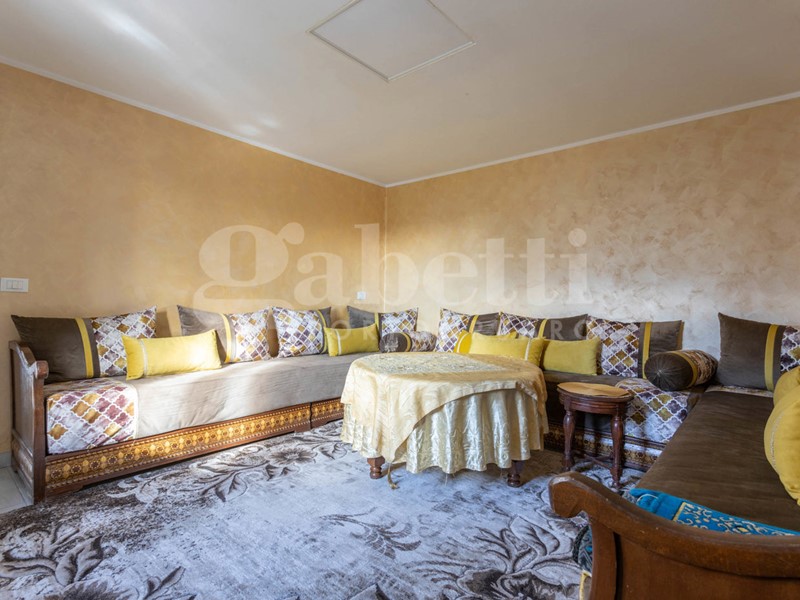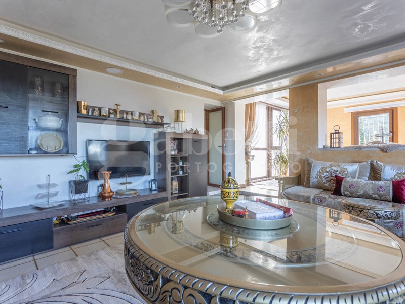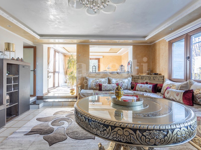 Entrando, si viene accolti da una grande zona cucina - pranzo che da un lato conduce a un bagno finestrato con nicchia doccia e a un salottino riservato, facilmente trasformabile in uno studio o in una camera singola. Proseguendo, si accede a una zona living molto articolata, composta da tre stanze comunicanti oggi utilizzate come salotto e zona relax. Una di queste stanze è caratterizzata da una grande vetrata che regala luminosità agli ambienti e conduce direttamente allo scoperto esterno, favorendo una perfetta continuità tra dentro e fuori.
