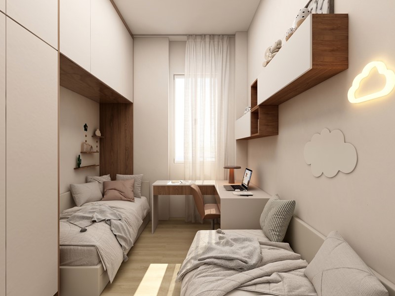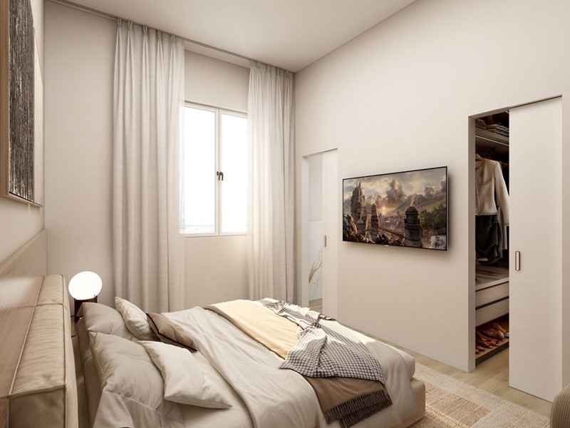 La zona notte comprende una MASTER ROOM completa di cabina armadi e bagno privato, una camera singola e un bagno finestrato disimpegnato.