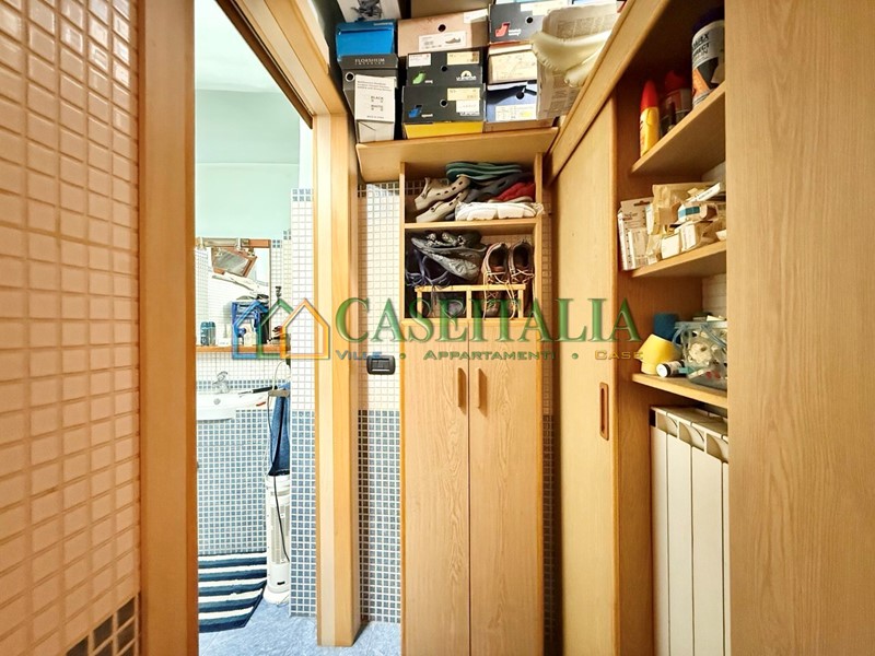 L’appartamento, curato e funzionale, offre una distribuzione degli spazi studiata per garantire comfort e praticità: la zona notte è attrezzata con letto a scomparsa, armadiatura e angolo studio, mentre la cucina con penisola crea un ambiente conviviale e ben sfruttato.
