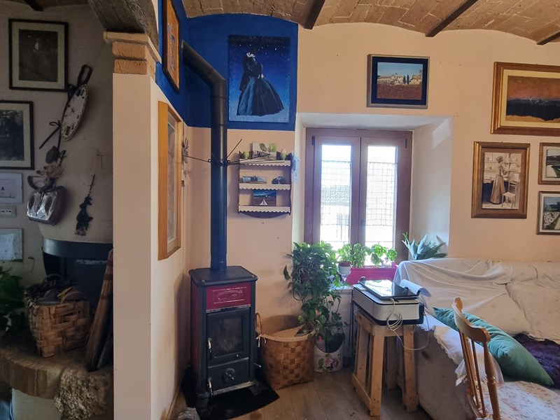 Casciano di Murlo (SI) Vendesi, in un borgo poco fuori dal paese, in posizione dominante, porzione di terratetto panoramico in pietra a vista di circa 280 m² (oltre resede esclusivo) sviluppato su due livelli completamente ristrutturato nel vecchio con rifiniture di pregio in stile tipico toscano, con volte e travi e travicelli.