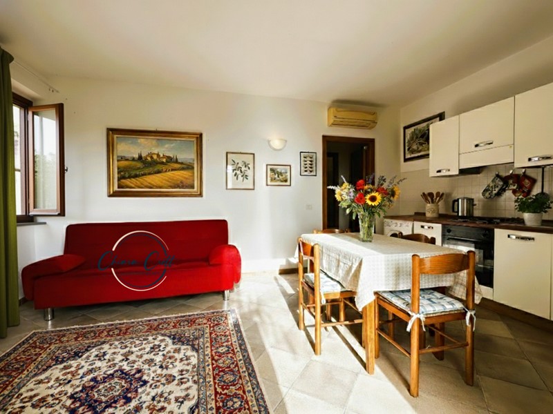 Proponiamo in vendita un grazioso bilocale con giardino privato e ingresso indipendente, libero su due lati, situato all’interno della Fattoria Mirabella, un’antica struttura del XVIII secolo completamente ristrutturata nel 2000 e trasformata in un elegante complesso residenziale dotato di piscina e ampio solarium con vista panoramica sulle colline.