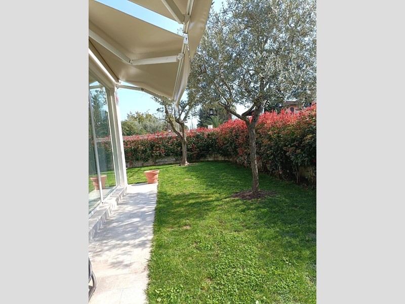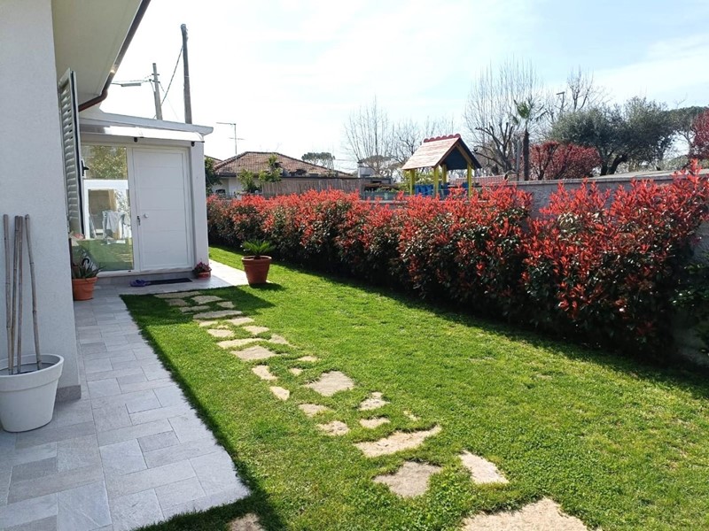 A metri 700 dal mare proponiamo la vendita di una villetta singola di nuova costruzione, disposta tutta a piano terreno, con solarium, loggiato vivibile e mq. 450 di giardino con spazio per posti auto. internamente si compone di ingresso-soggiorno con cucin a vista, due camere da letto, bagno, ampio loggiato al piano terra; solarium al piano primo.