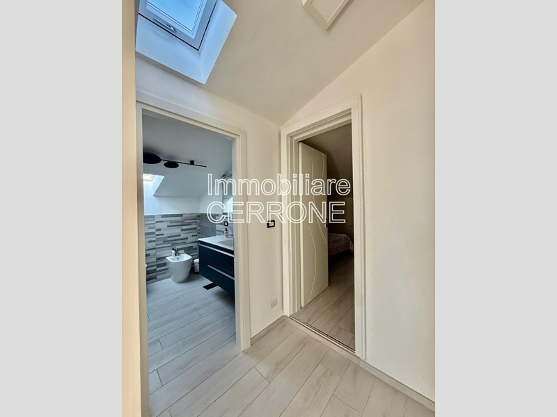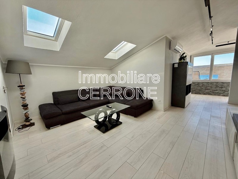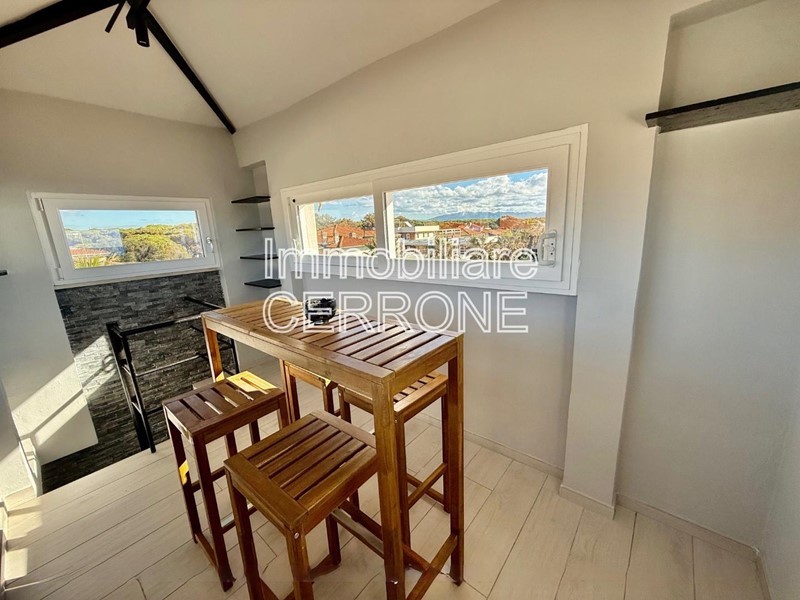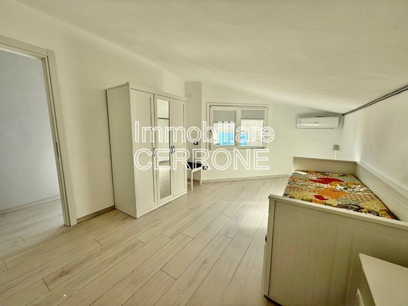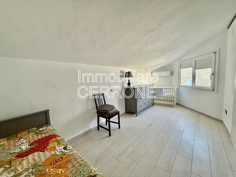 Trovano poi spazio una cucina, un ripostiglio, 3 camere da letto di cui una matrimoniale e due comode camerette mansardate che godono di vista mare, oltre a 2 bagni finestrati dotati di box doccia.