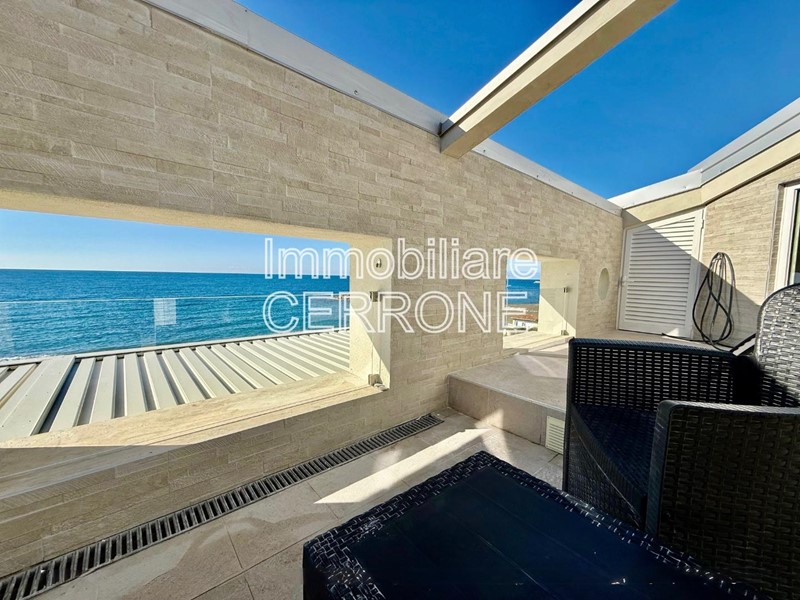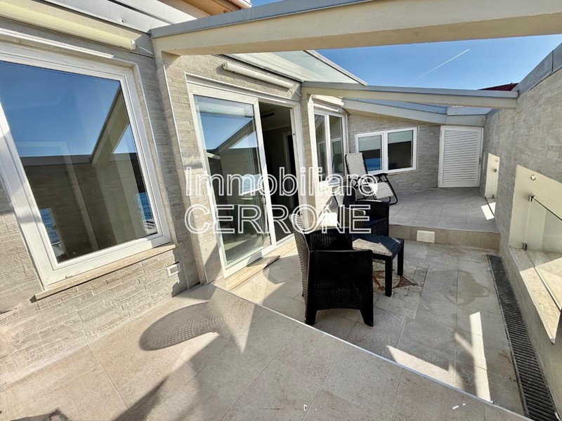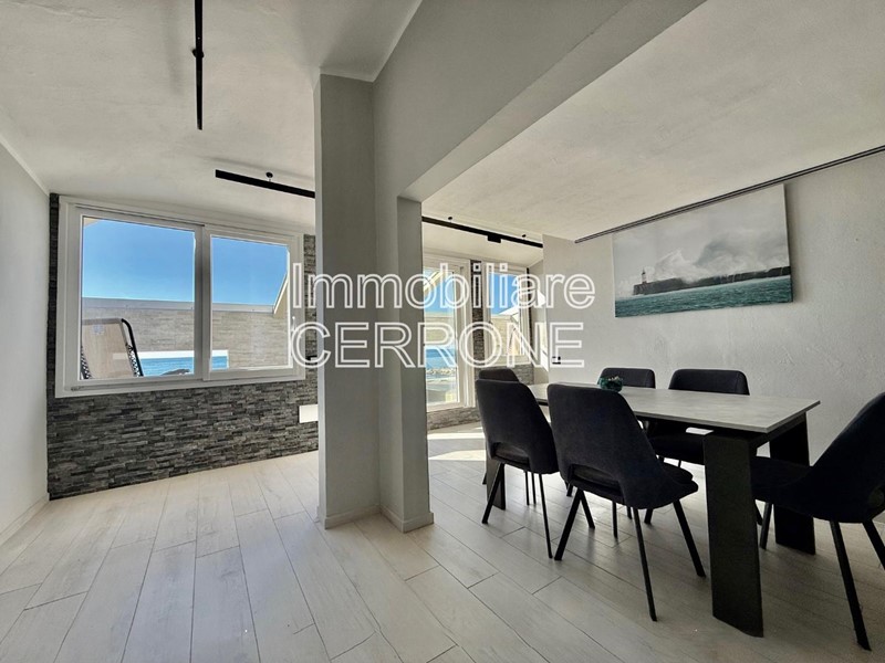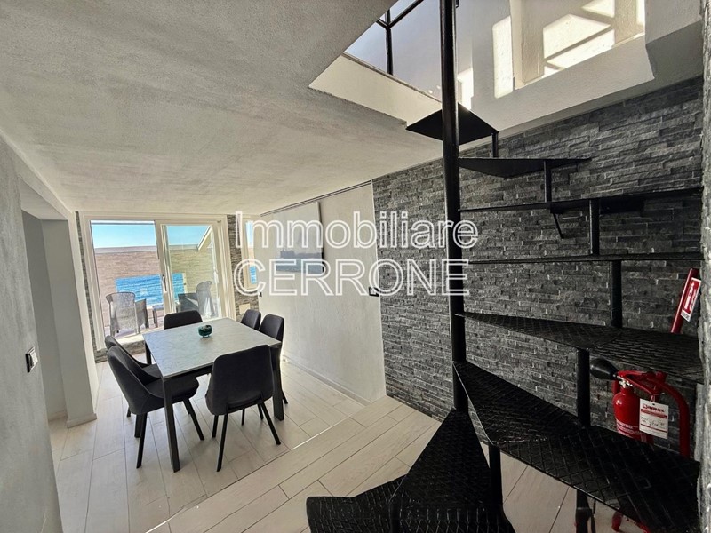 L’ingresso, servito da una scala interna che accede a sole 4 unità immobiliari, conduce ad un’ampia e luminosa zona giorno open space, impreziosita da una vetrata attraverso la quale si accede ad una meravigliosa terrazza abitabile che affaccia proprio sul mare, perfetta per trascorrere momenti di relax all’aria aperta respirando il profumo del mare.