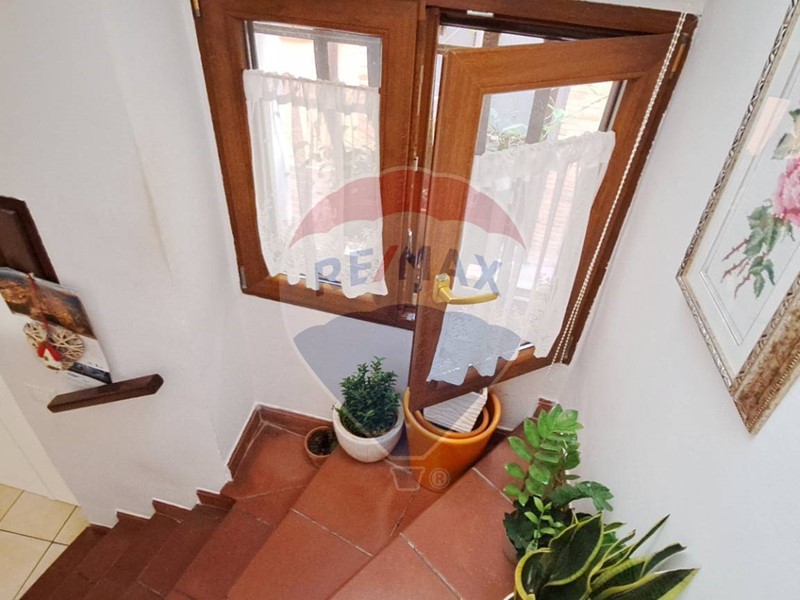 L'ingresso ci conduce alla cucina abitabile e al soggiorno (dove attualmente con un separé è stata creata una terza camera da letto), al piano primo un ampio disimpegno, due camere da letto con balconcino, bagno, sotto la gradinata che conduce al piano secondo è stato ricavato un armadio incassato con angolo lavanderia.
