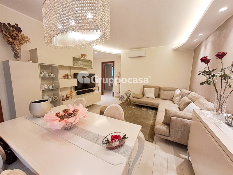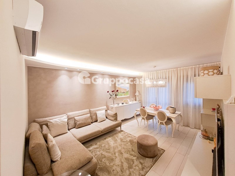 Il trilocale è composto da ingresso, soggiorno, cucina abitabile, doppi servizi, due camere da letto e due balconi.