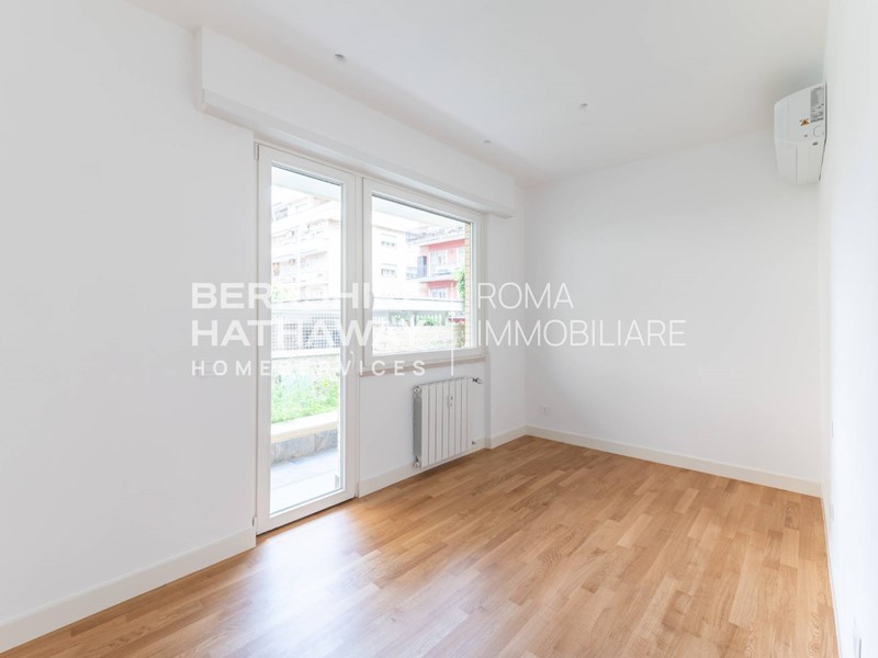 Nella residenziale zona dei Colli Portuensi esattamente nellelegante via Vincenzo Tizzani, proponiamo la vendita un appartamento in un comprensorio di palazzine in cortina, con servizio di portineria. L appartamento posto al Piano Terra di una Palazzina di soli 4 piani, si compone di mq 140 circa interni, oltre il terrazzo pavimentato di circa mq 60 ed un giardino di complessivi mq 80 circa che circonda lintero immobile. Completa la proprietà una cantina di circa mq 3,0. Limmobile molto luminoso in quanto si sviluppa su 3 lati, verrà consegnato completamente ristrutturato e così composto: ingresso, ampio salone, zona pranzo e cucina a vista con accessi diretti al terrazzo ed al giardino; nella zona notte una camera matrimoniale, con spaziosa cabina armadio, bagno en-suite dotato di doccia e propria finestra e con accesso al terrazzo, ulteriori due camere singole, altro bagno con doccia. Riepilogo: mq 167 commerciali così suddivisi: mq 140 interni (di cui 125 netti) + esterni mq 140 di cui terrazzo mq 60 e giardino mq 80 cantina mq 3,0. Prezzo richiesto Euro 685.000,00 Consulente Immobiliare Annalisa RIF104V25 Cl En D Tel. 068559689