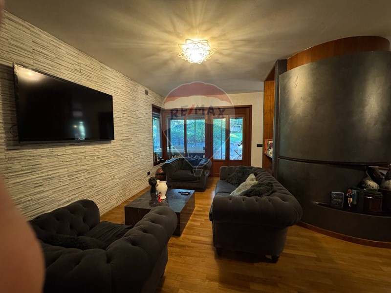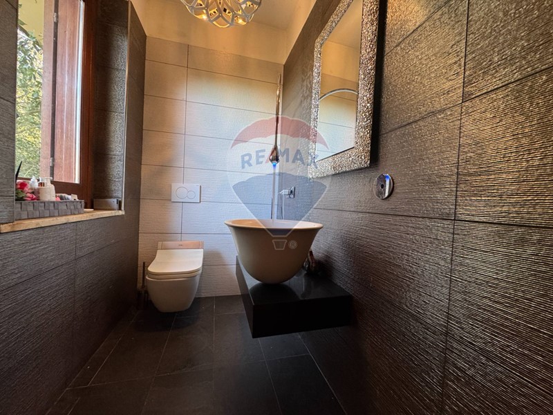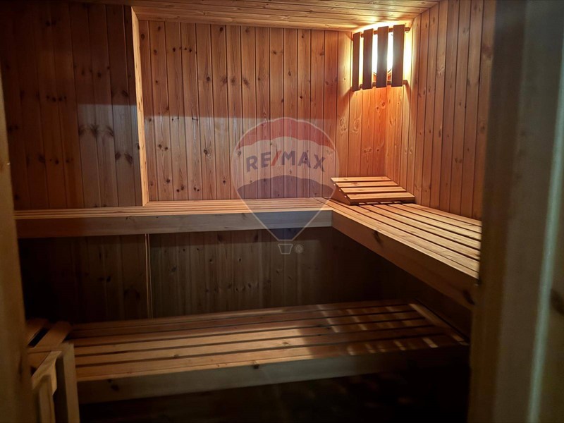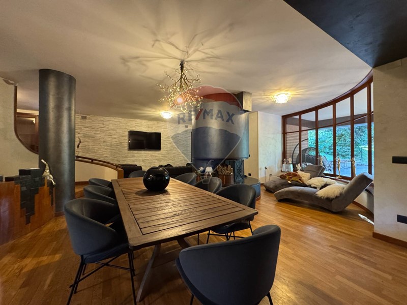 Al piano seminterrato un'ulteriore zona living con ampia e moderna cucina, un bagno con sauna e locale spogliatoio a servizio della piscina esterna.