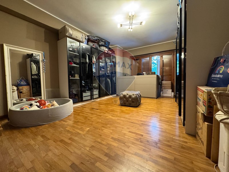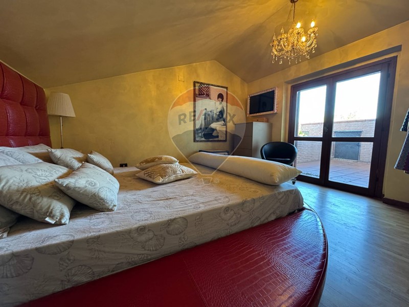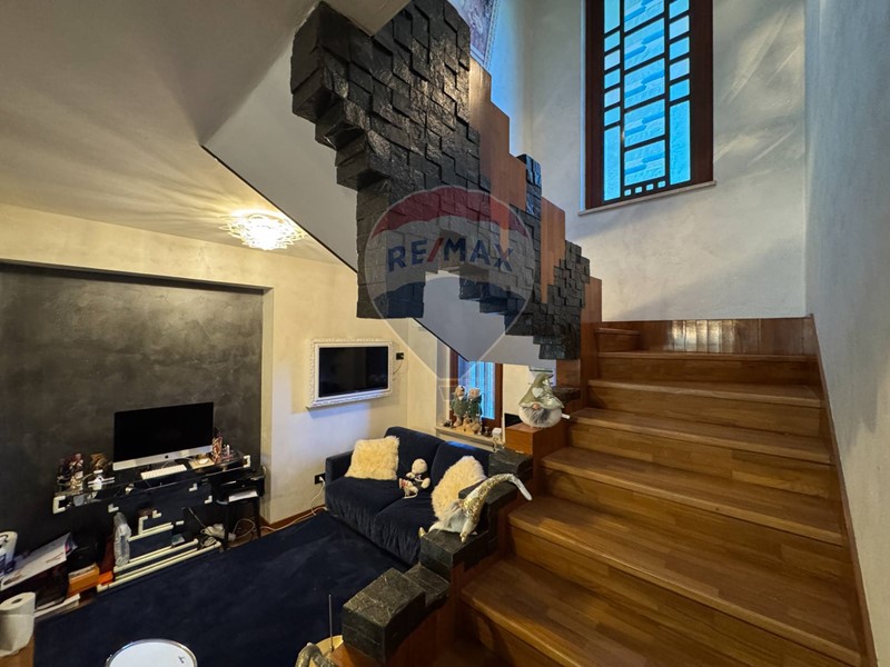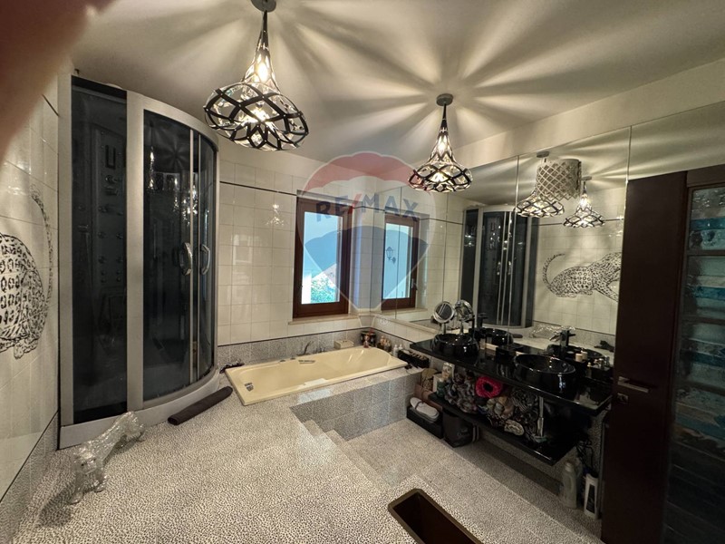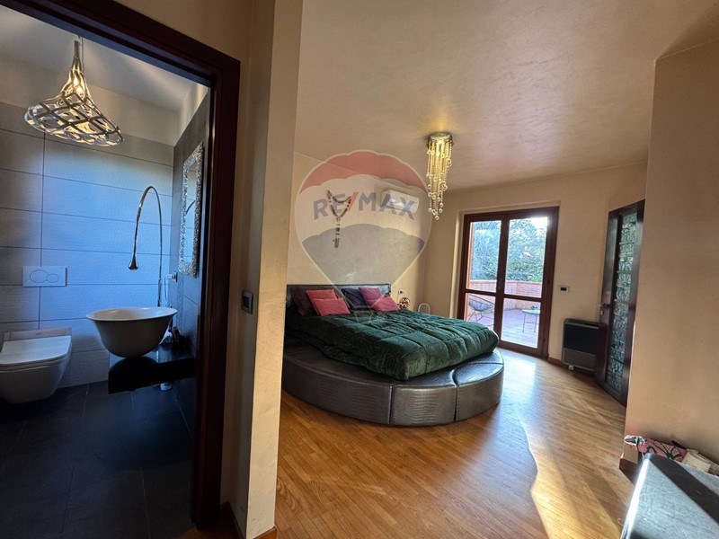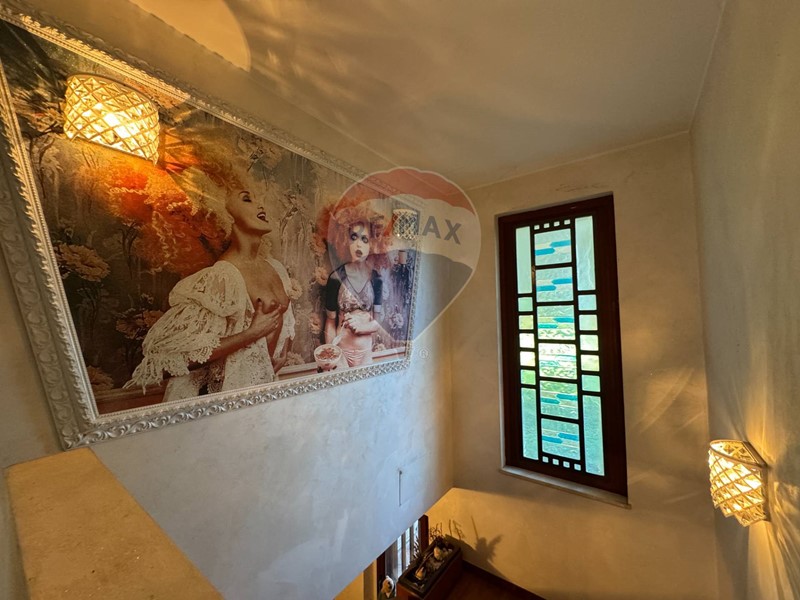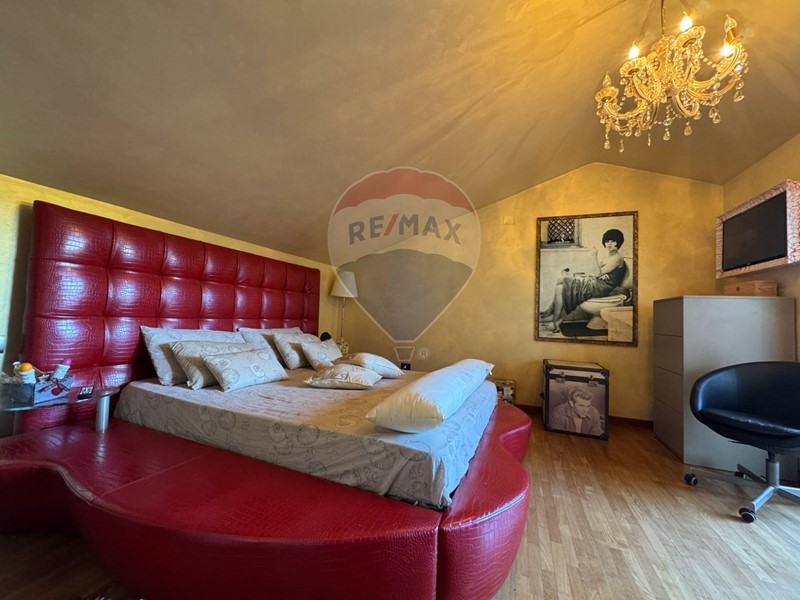 Proseguendo tramite una bellissima scala di design accediamo al piano primo che ospita una grande zona notte con master room che comprende letto matrimoniale con angolo tolette, bagno e ampia camera guardaroba, è inoltre presente una seconda camera matrimoniale e un bagno elegante dalle grandi dimensioni.