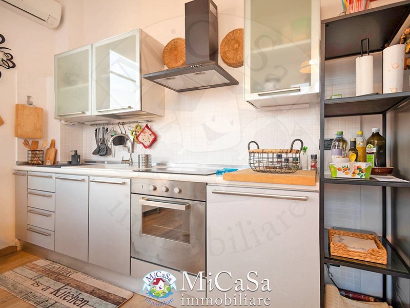 Limmobile, venduto completamente arredato, si compone di ingresso, ampio soggiorno di circa 29 mq con angolo cottura e grandi finestre vista mare, luminosa camera matrimoniale, bagno moderno con box doccia; completano la proprietà un posto auto scoperto.