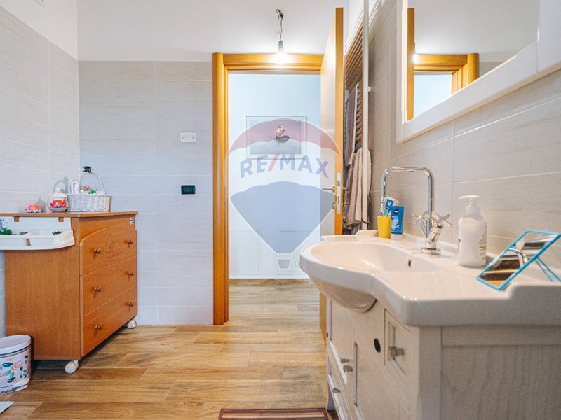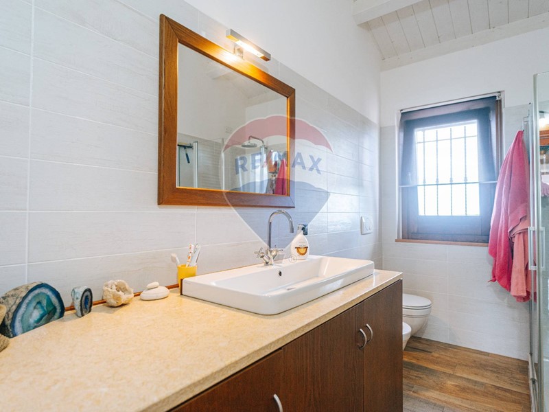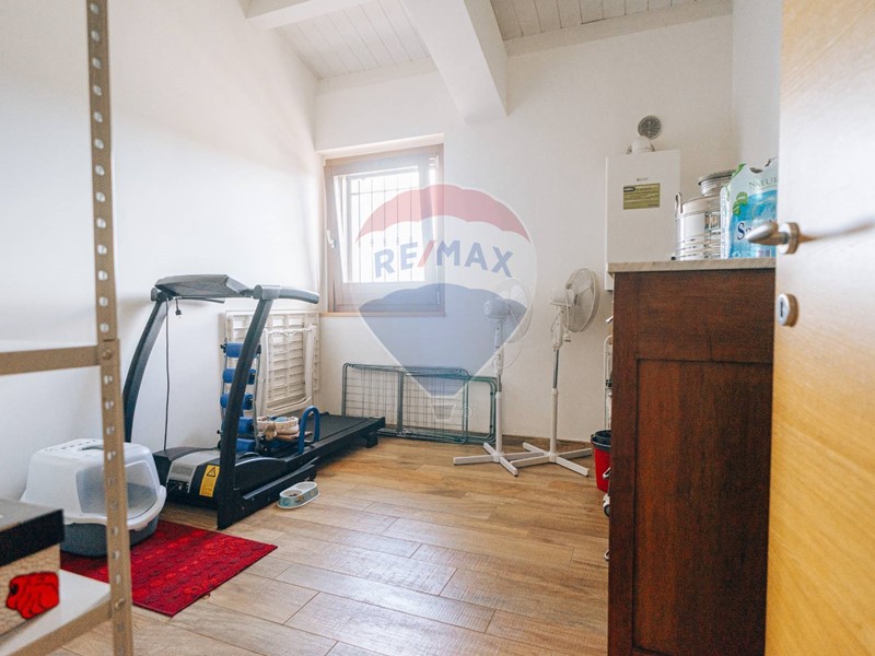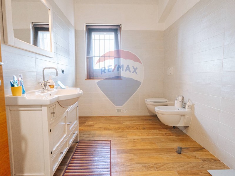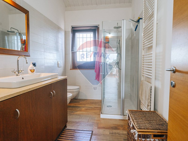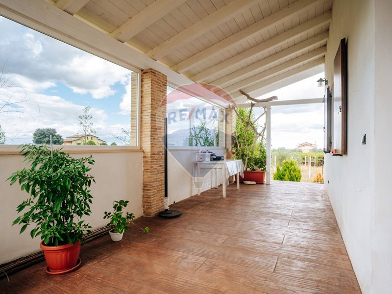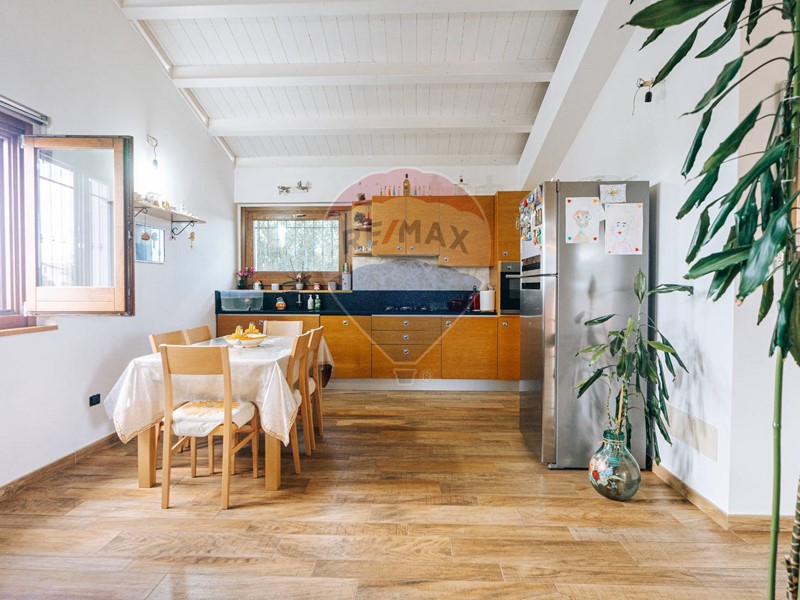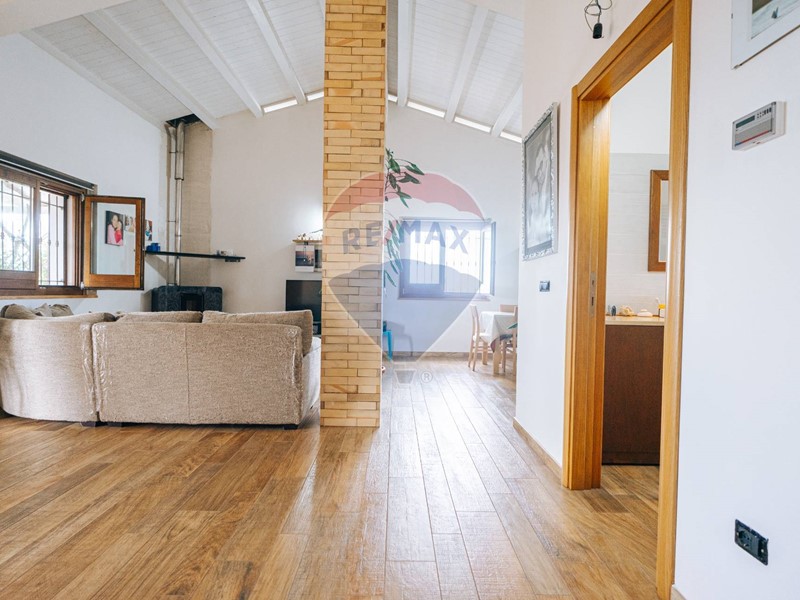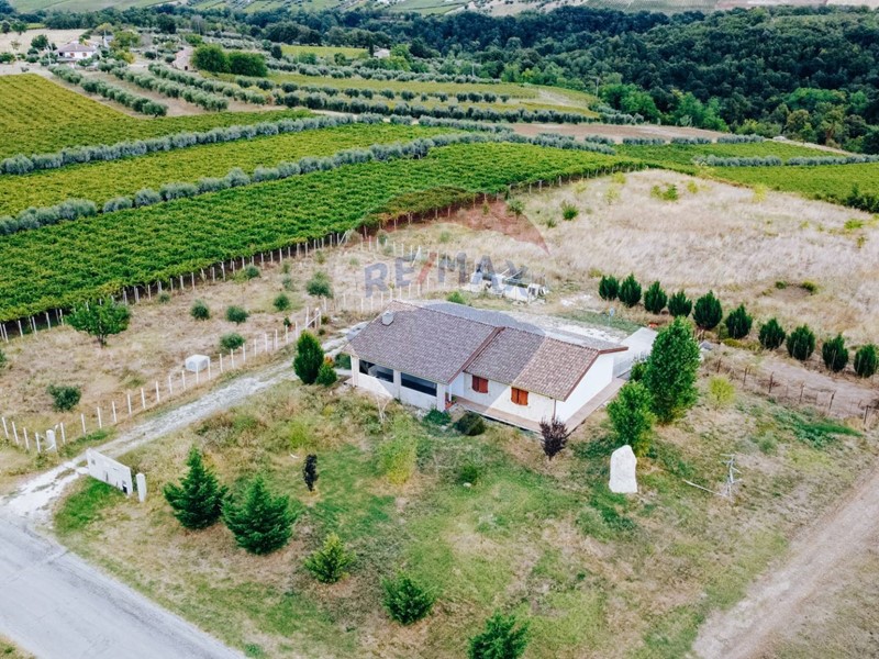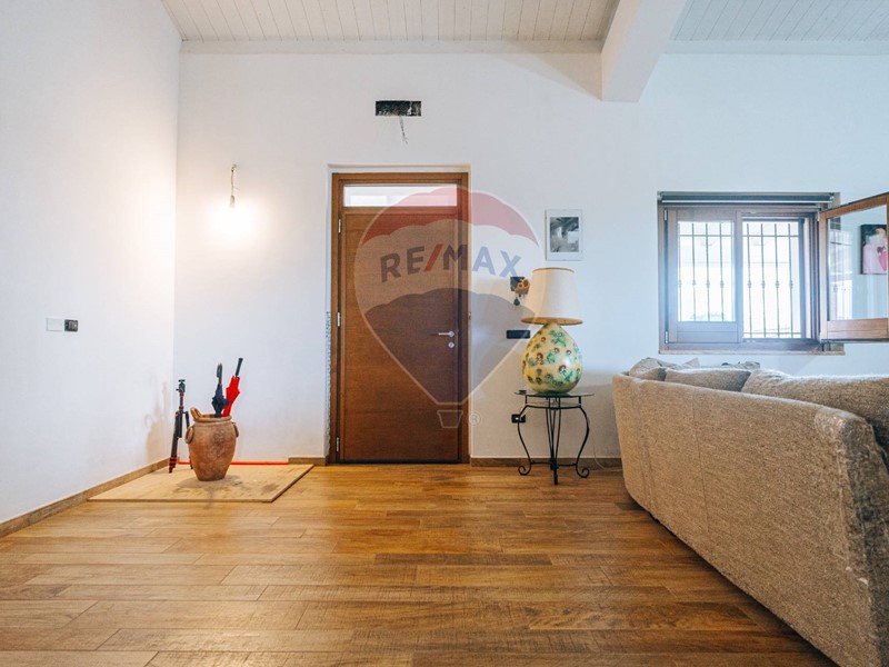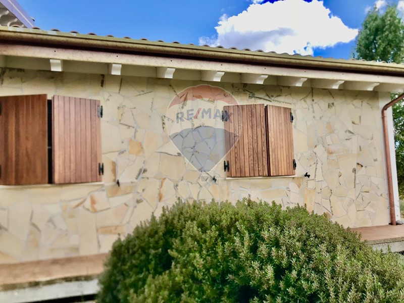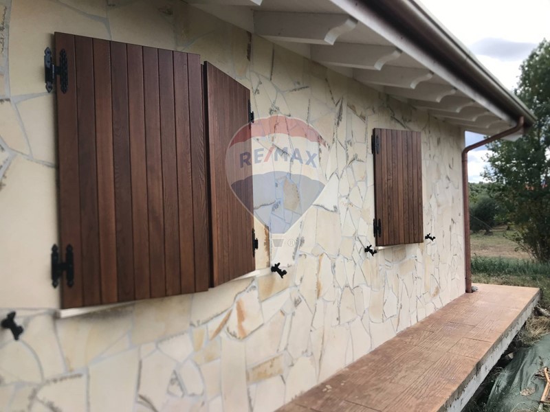 L'abitazione è fornita di zanzariere, due diffusori di climatizzazione, riscaldamento a pavimento, termo camino a pellet, autoclave..