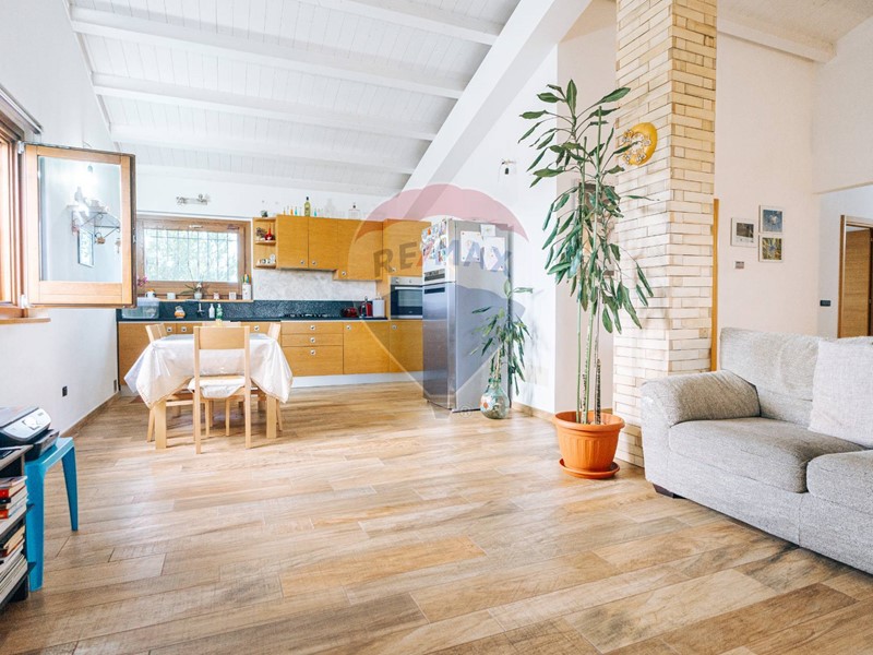 Ci accoglie subito la zona giorno, è un ambiente unico che non ha pareti divisorie o elementi strutturali ed ospita funzioni abitative differenti, una cucina a vista che convive, nello stesso spazio dell'ampio salone che può offrire tantissime soluzioni di arredo personalizzato per i nuovi inquilini.