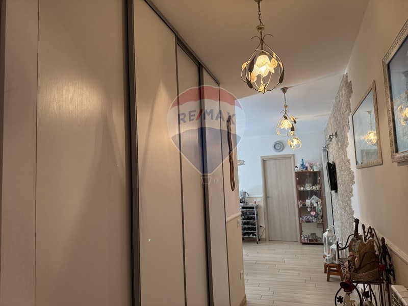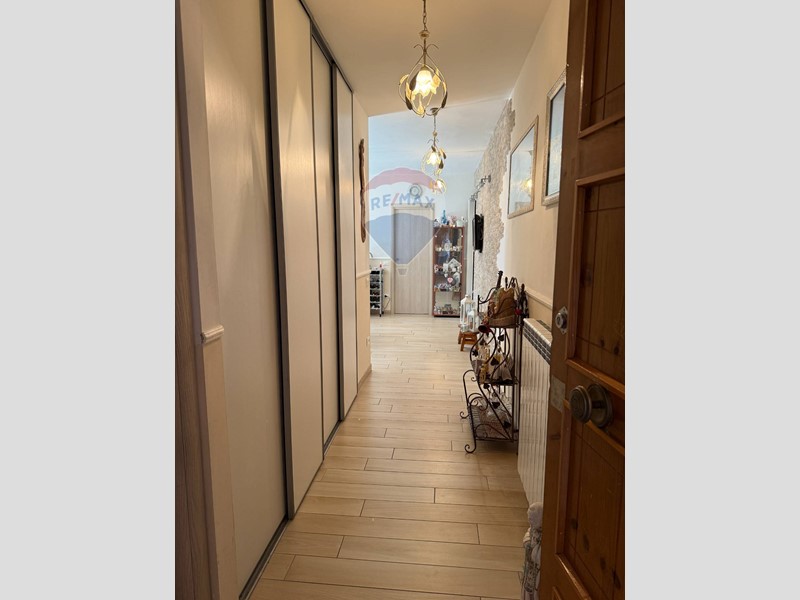 L'ingresso si apre su un corridoio che conduce ad un accogliente open-space con cucina totalmente attrezzata e soggiorno con divani per angolo TV, lungo il corridoio, è posizionato un guardaroba a muro con ante scorrevoli, comodo balcone su zona giorno con tenda parasole.
