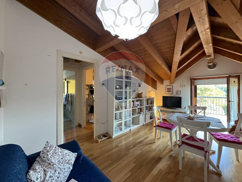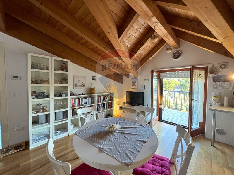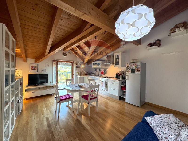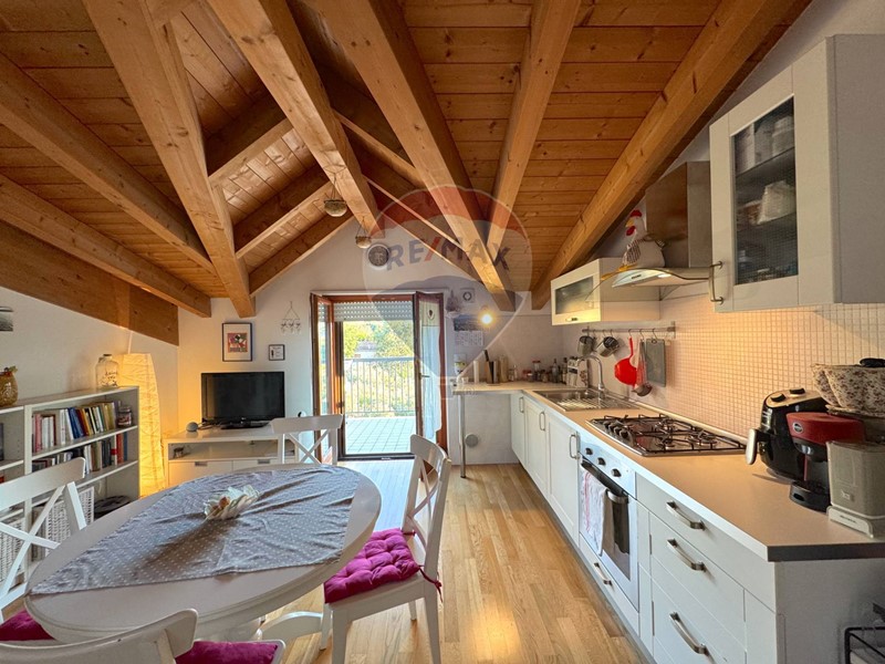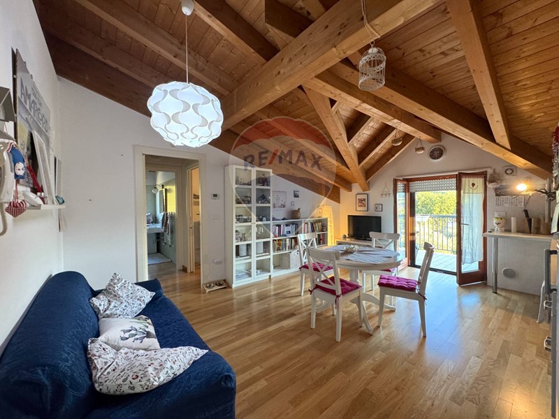 La superficie totale è di 64 metri quadrati, di cui 56 calpestabili, distribuiti in un luminoso soggiorno con tetto il legno a vista, l'angolo cottura a vista, una spaziosa camera da letto e un bagno completo con doccia.