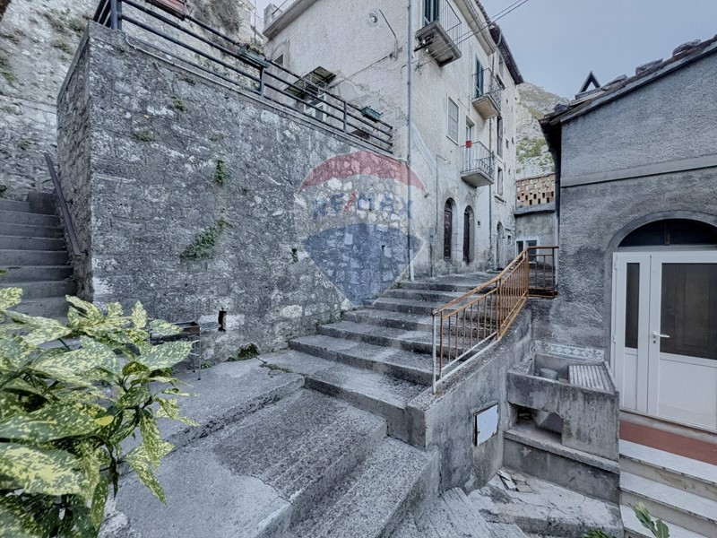 Casa in centro storico ubicata nella parte alta del caratteristico borgo montano di Fara San Martino, con splendida vista sulle montagne circostanti e sui tetti del centro storico; immobile non accessibile in automobile, ma con comode aree di parcheggio nelle immediate vicinanze, e raggiungibile nell'ultimo tratto (dal parcheggio all'ingresso) solo a piedi (attraverso ampia gradonata); l'immobile, di costruzione remota, con muri portanti in pietra, si sviluppa sul quattro livelli; al primo livello cantina con due ingressi ad arco e volte in pietra al primo livello, non comunicante internamente con l'abitazione sovrastante; al livello superiore (secondo) si accede all'abitazione, con ingresso, cucina, e soggiorno dotato di balconcino, scala che conduce al piano superiore, con due ampie camere da letto ciascuna dotata di balconcino caratteristico con ringhiera in ferro battuto, bagno e vano scala che prosegue nel sottotetto adibito a sgombero, e terrazza panoramica, con vista monti e tetti centro storico; l'immobile, seppur dotato di impianti (funzionanti ma non rispondenti alle normative vigenti), necessita di ristrutturazione; gli infissi sono stati sostituiti in epoca recente (alluminio e doppio vetro)