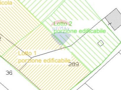 Il lotto, di circa 3.300 mq totali, per la prima parte di circa 1000 mq è EDIFICABILE (quella a ridosso della strada), mentre la parte retrostante, di circa 2300 mq, è a destinazione agricola.