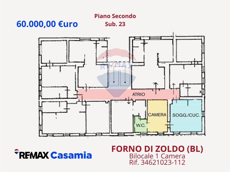 Vendiamo in ESCLUSIVA REMAX un MINI APPARTAMENTO (SUB. 23) al piano secondo, frazionabile da altro subalterno, in palazzina ristrutturata a B&B e ristorante.