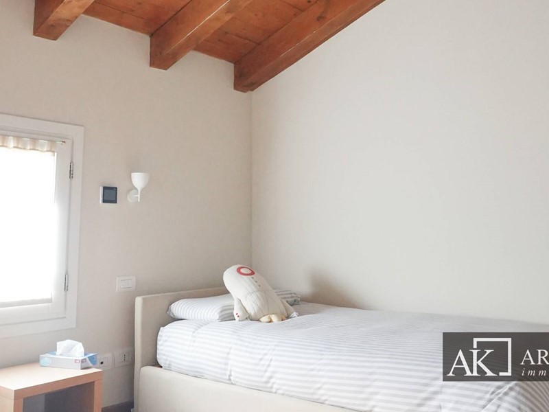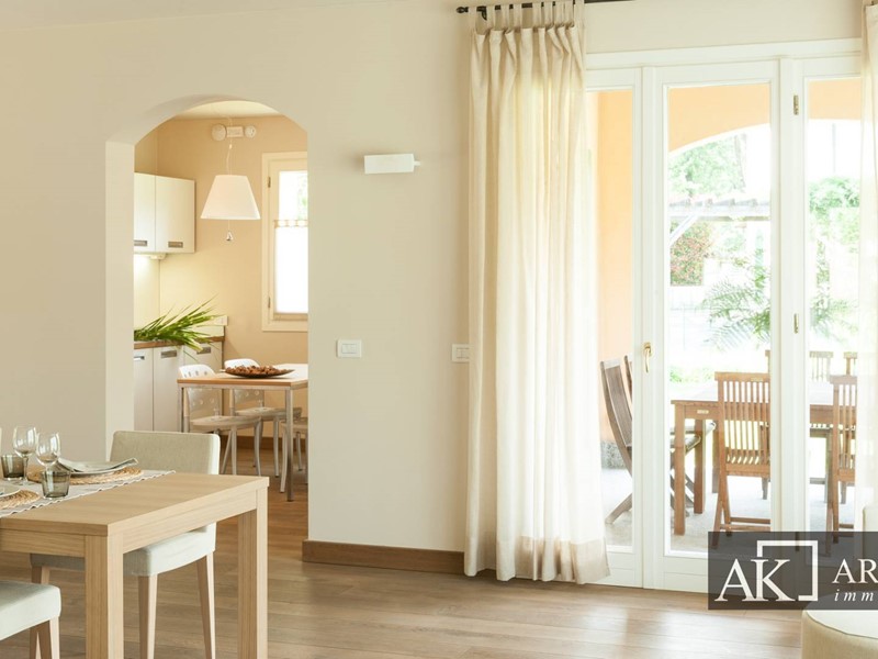 Al piano terra ampio soggiorno, grande sala da pranzo, cucina abitabile che si affaccia sul porticato, studio / ufficio con accesso al secondo portico e due bagni giorno.
