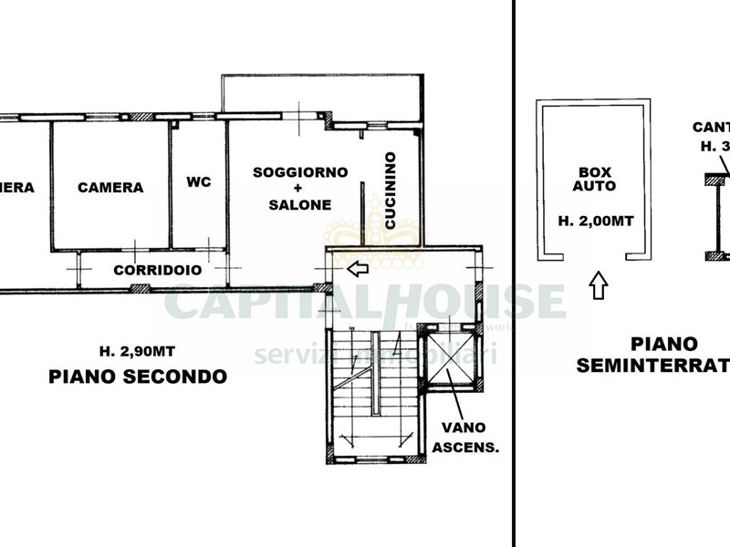 -Piano seminterrato: Box auto di 17mq + cantinola di 4mq;