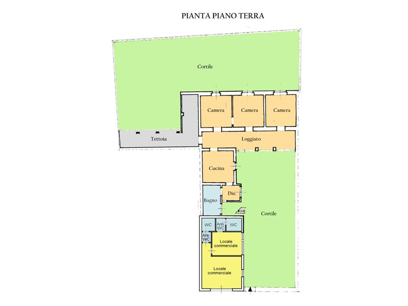 L'unità residenziale è costituita da una casa indipendente al piano terra di 137 mq, composta al suo interno da loggiato, cucina, tre camere, disimpegno e bagno. Completa un ampio cortile fronte e retro di complessivi 392 mq.