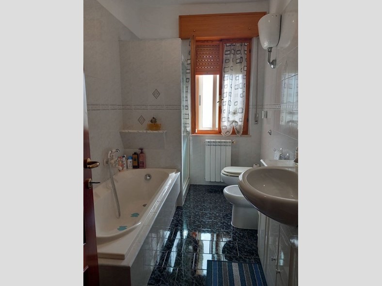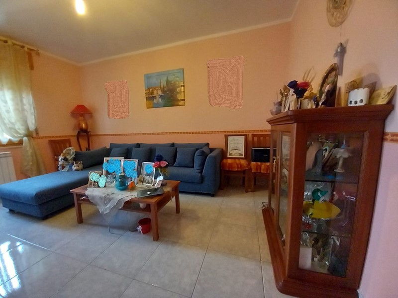 La casa è situata al primo piano di una palazzina di tre unità immobiliari, senza spese condominiali, con tripla esposizione e due balconi di 15mq ciascuno, gli infissi in legno, doppio vetro e doppio infisso PVC bianco con doppio vetro antisfondamento. L'immobile è composto da un andito di disimpegno che divide gli ambienti, soggiorno/cucina in open space con camino, un salotto/studio, tre ampie camere da letto e due bagni, di cui uno con doccia e vasca, presente un antibagno con lavatrice, asciugatrice e con la predisposizione di uno scaldabagno. Il riscaldamento è autonomo con i termosifoni alimentati a gas.