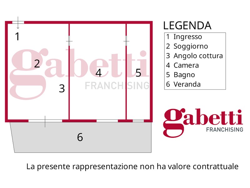 Proponiamo in locazione, bilocale di ca 28 mq, composto da: ingresso/cucina, camera da letto con bagno e veranda di ca 10 mq.