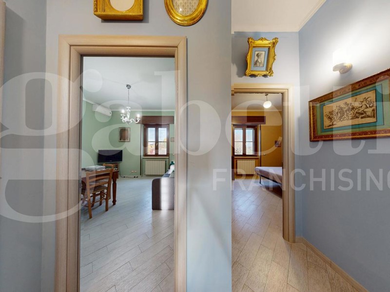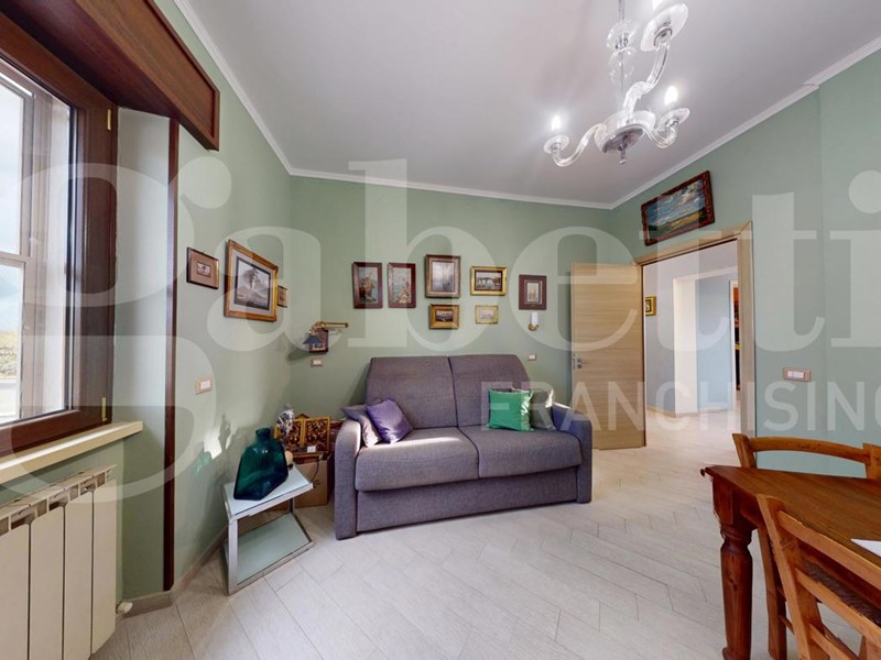 L'immobile è così composto: ampio ingresso, cucina abitabile con accesso al balcone, disimpegno con ripostiglio e soppalco, due camere da letto matrimoniali e bagno finestrato con box doccia.