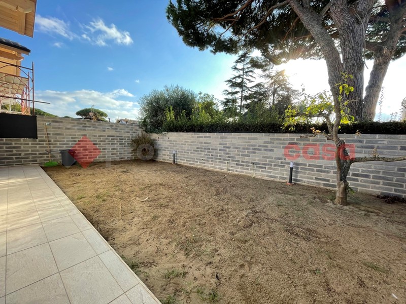 Il giardino è dotato di prato a rotoli, impianto di irrigazione e illuminazione esterna.