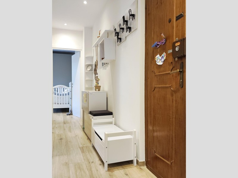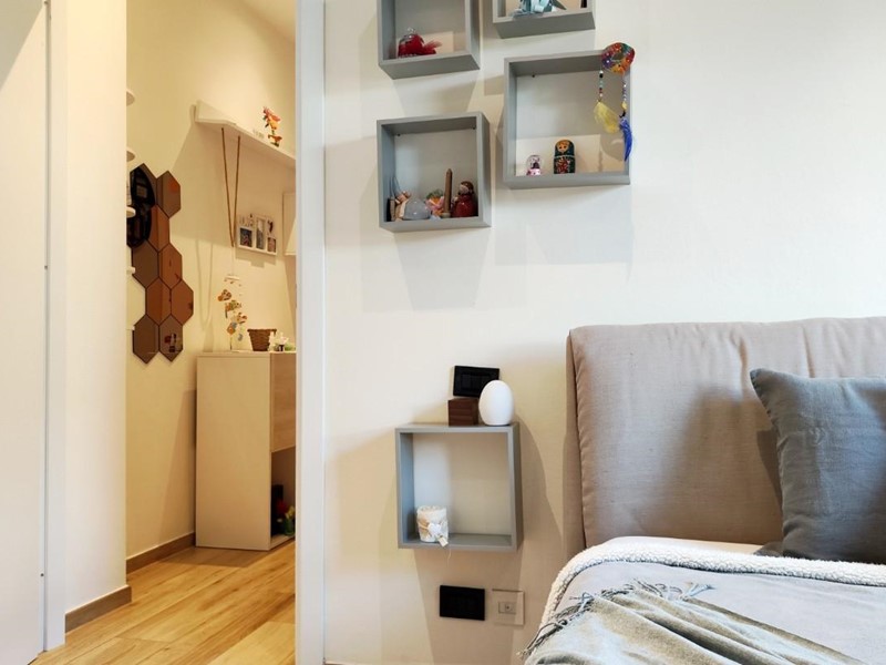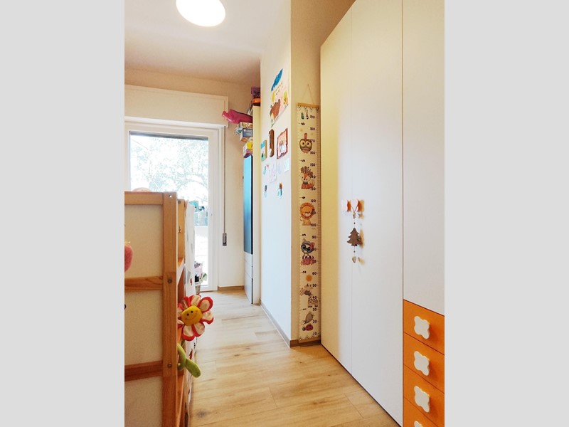 Internamente si compone di una bella zona giorno con cucina a vista e accesso diretto allo spazio esterno. Camera matrimoniale, cameretta e bagno con doccia finestrato.