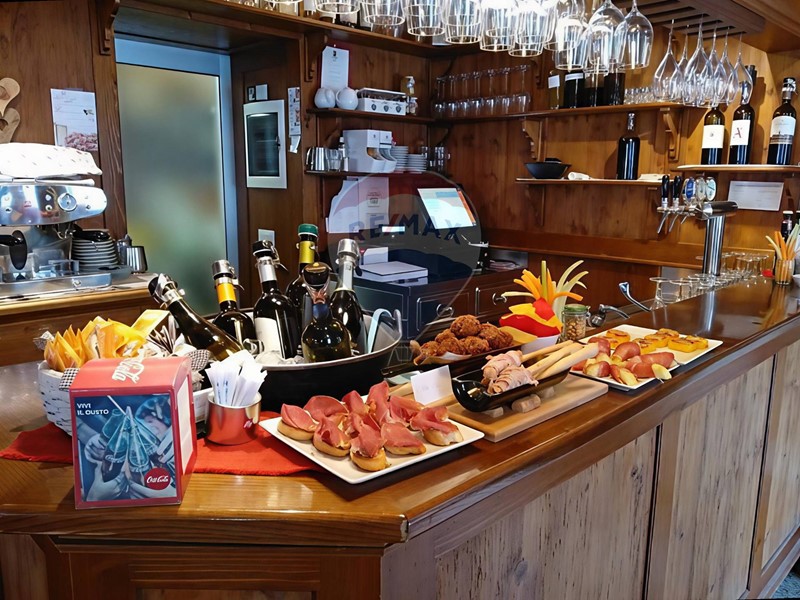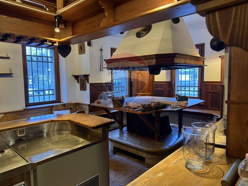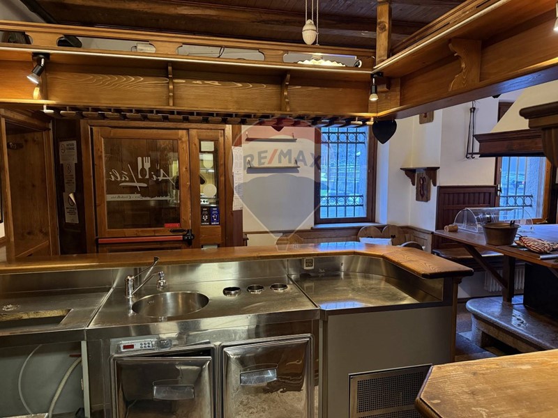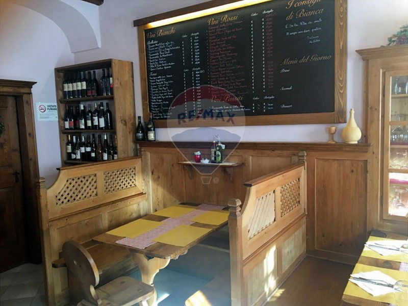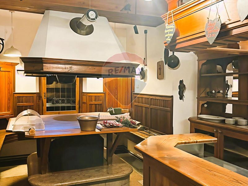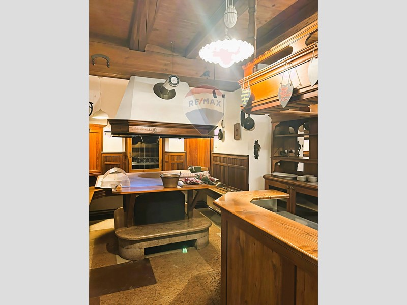 Ristorante completamente arredato in tipico stile di montagna, con splendido larìn, cucina attrezzata e garage/deposito, in vendita con ESCLUSIVA REMAX.