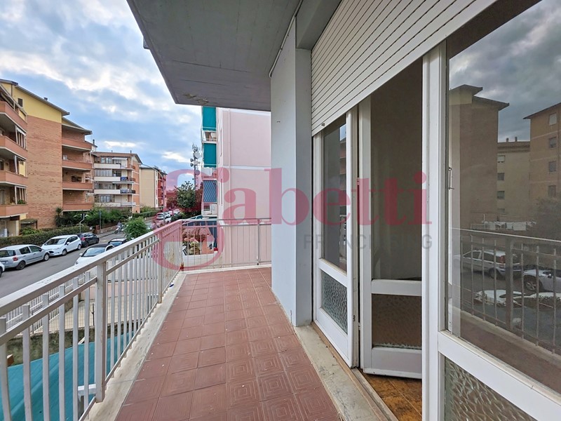 L'ingresso con ripostiglio conduce alla cucina abitabile, dotata di accesso alla terrazza che circonda l'appartamento e ospita un vano tecnico con caldaia autonoma.