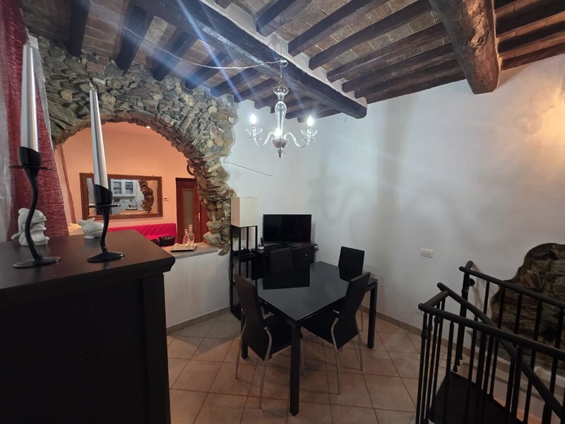 Appartamento con ingresso al piano primo composto da disimpegno soggiorno con area pranzo e zona relax, cucinotto , bagno finestrato doccia, al piano terra (raggiungibile con scala a chiocciola) si trova la camera matrimoniale.