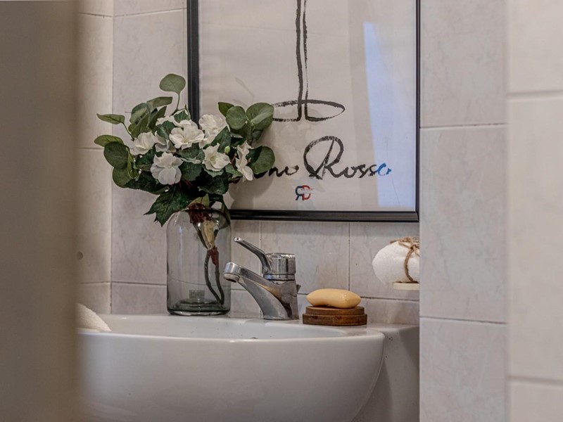 Arrivato in cima alla scala vedi 4 camere matrimoniali e 1 studio e sei circondato dall autenticità dei materiali tipici delle case toscane: