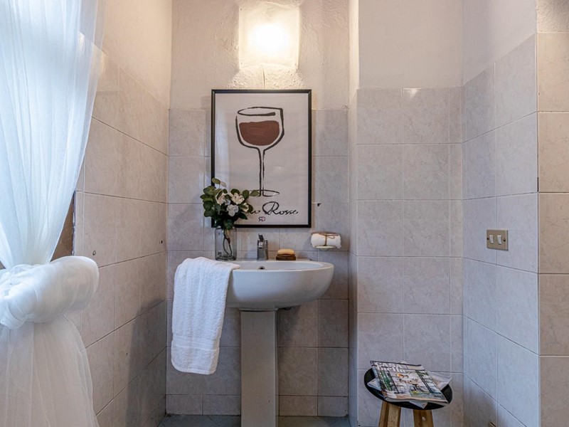 accedi anche ad un bagno con doccia pratico e funzionale.