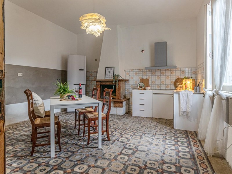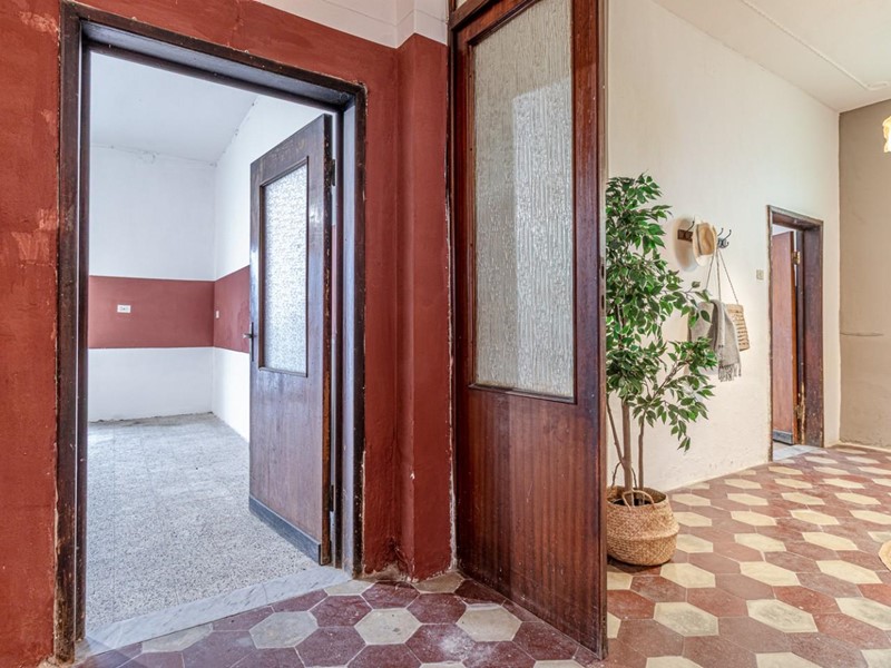 pavimenti originali in cementine, graniglia e porte in legno con modanature originale color mogano e infissi in legno con persiane, in parte in