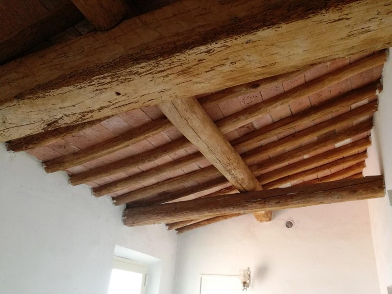 Posibilità di arredamento. Soffitti in travi e travicelli. Stufa a pallets.
