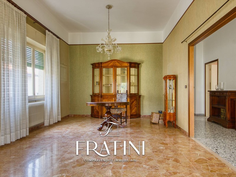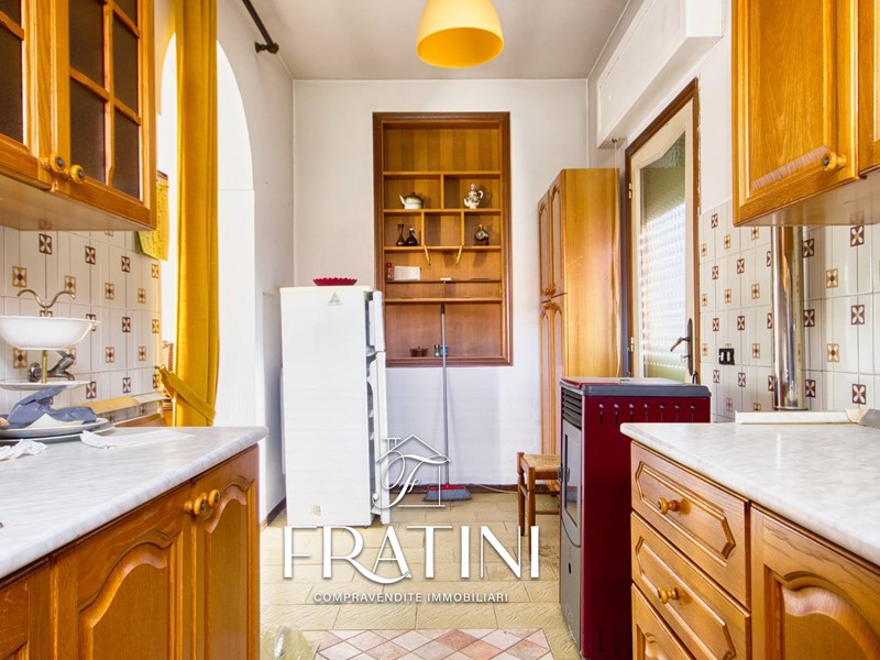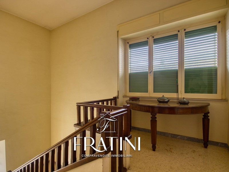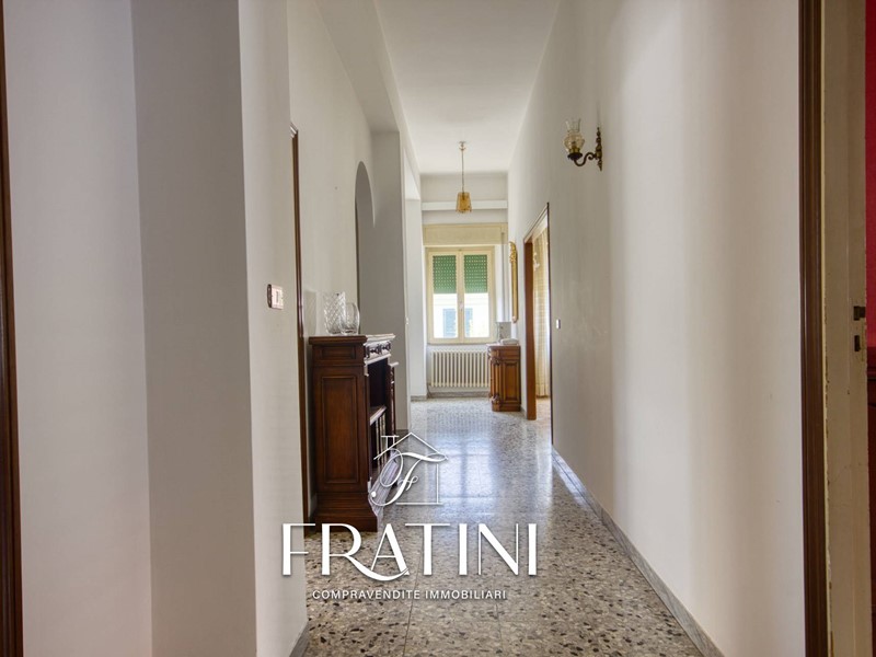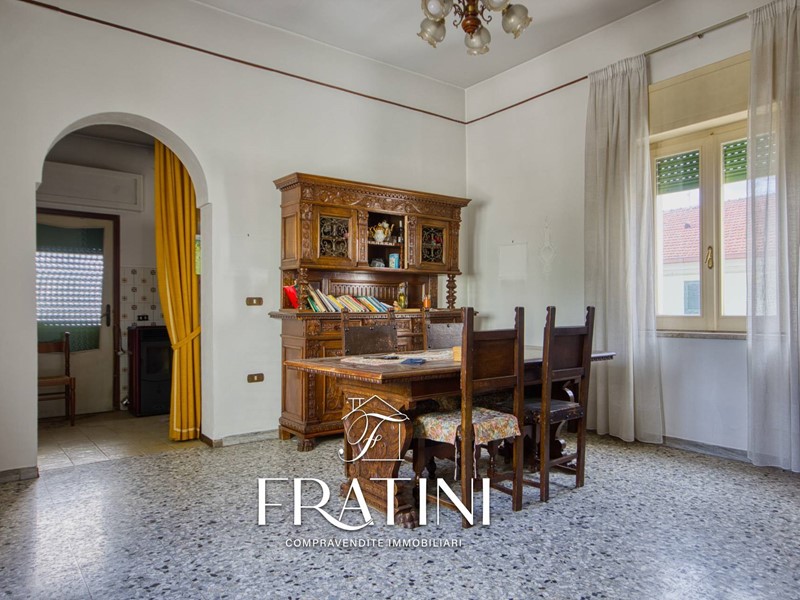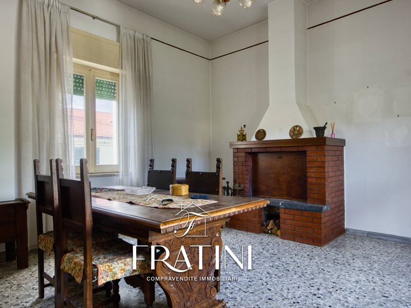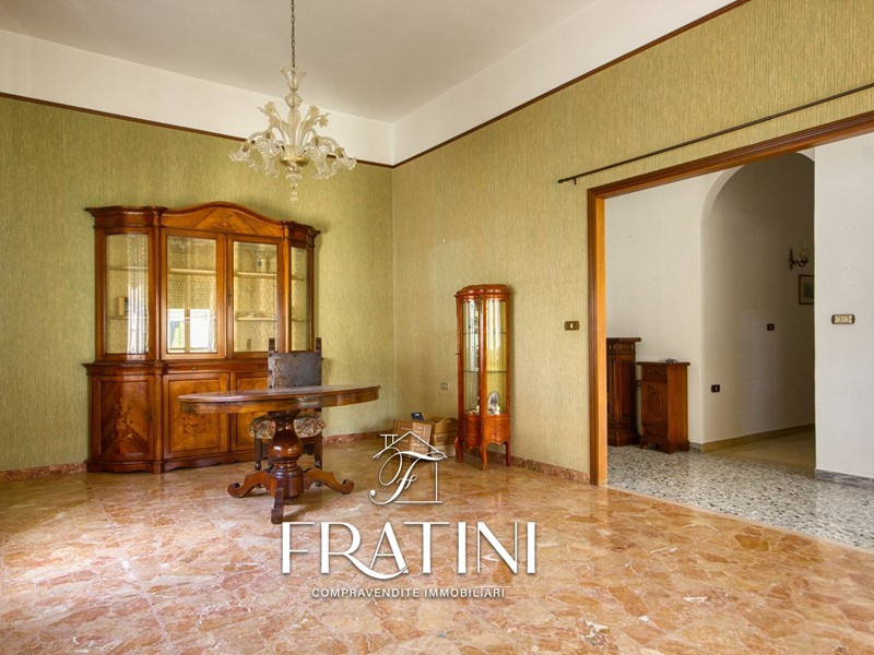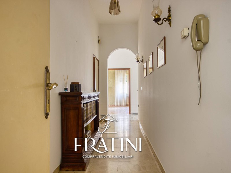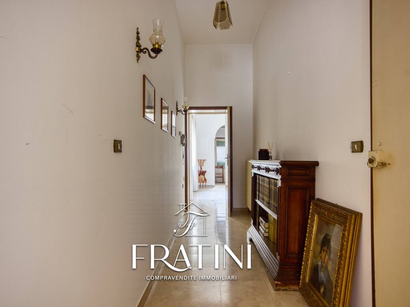 Attraverso la scalinata interna si raggiunge lappartamento posto al primo piano. Lingresso si apre su un corridoio che conduce al primo soggiorno con camino e cucinotto, dal quale si accede alla terrazza di circa 50 mq. Proseguendo si incontra un secondo soggiorno, più ampio e luminoso, e successivamente la zona notte composta da tre camere (due matrimoniali e una singola), un bagno di servizio con vasca e un bagno privato con doccia allinterno di una delle camere matrimoniali. La pavimentazione è in marmo e granito, il riscaldamento è garantito da caldaia a metano con radiatori in ghisa, mentre le finestre sono in legno vetro singolo con tapparelle.