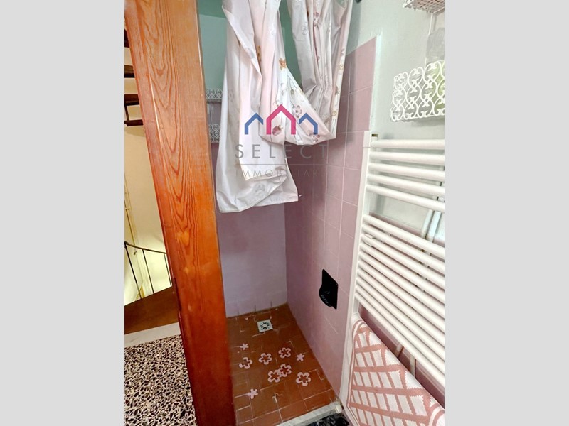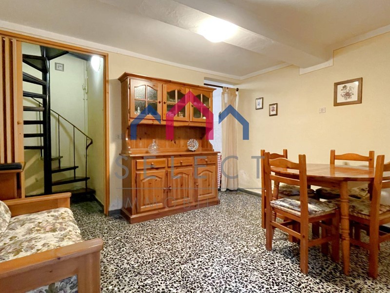 Al piano terra entriamo direttamente nella zona giorno con cucinotto e scala a chiocciola per l'accesso ai piani superiori. Al piano primo abbiamo un disimpegno, bagno con doccia e camera. Al piano secondo ed ultimo abbiamo un'altra camera e ripostiglio.