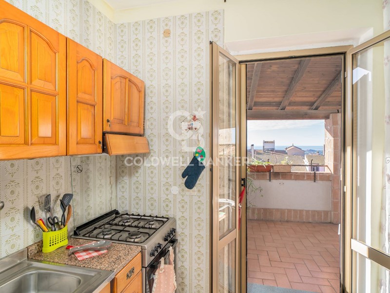 Labitazione, di 70 mq, accoglie con un soggiorno luminoso dotato di angolo cottura, dal quale si accede alla vera protagonista di questa proprietà: una terrazza di 22 mq che regala una vista spettacolare sui tetti del borgo e sul mare allorizzonte. Uno spazio raro e prezioso, perfetto per vivere momenti di relax o convivialità immersi nella bellezza del centro storico.