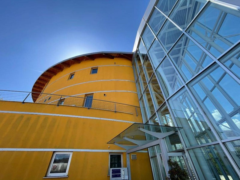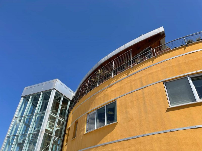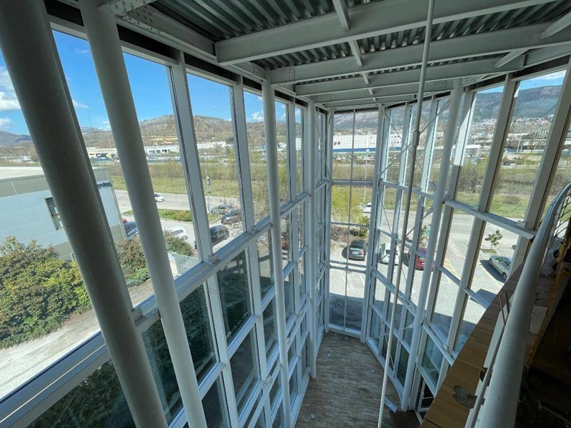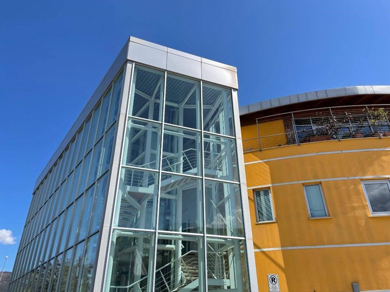 L'edificio ci accoglie con un ampio ingresso vetrato dove troviamo un moderno ascensore e la scala comune.
