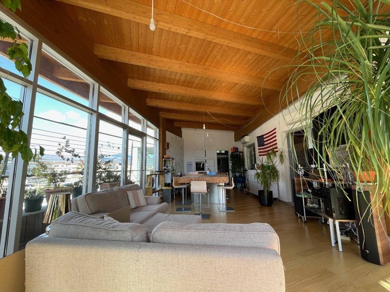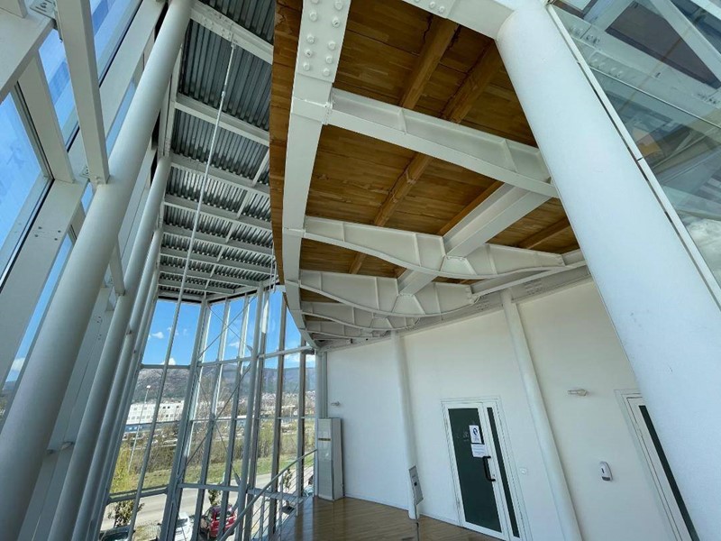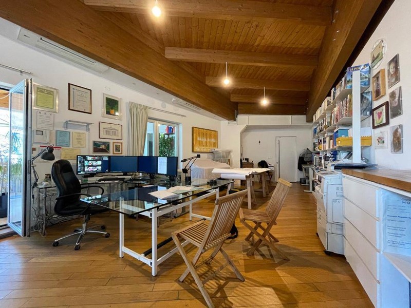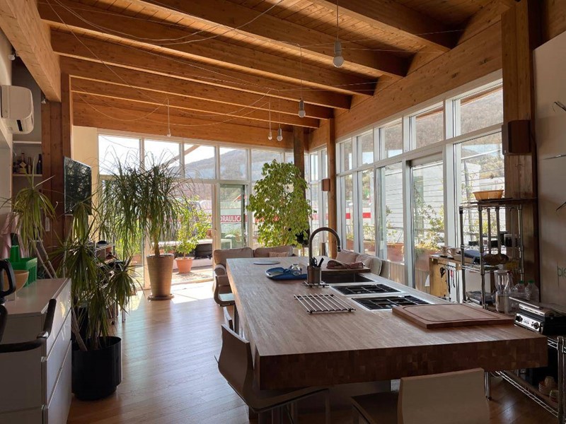 La soluzione, di particolare pregio architettonico in acciaio e legno, offre due ambienti ampi e luminosi con pareti completamente vetrate e soffitti alti in legno a vista che rendono la struttura molto versatile per le esigenze più varie, una cucina a vista e un bagno.