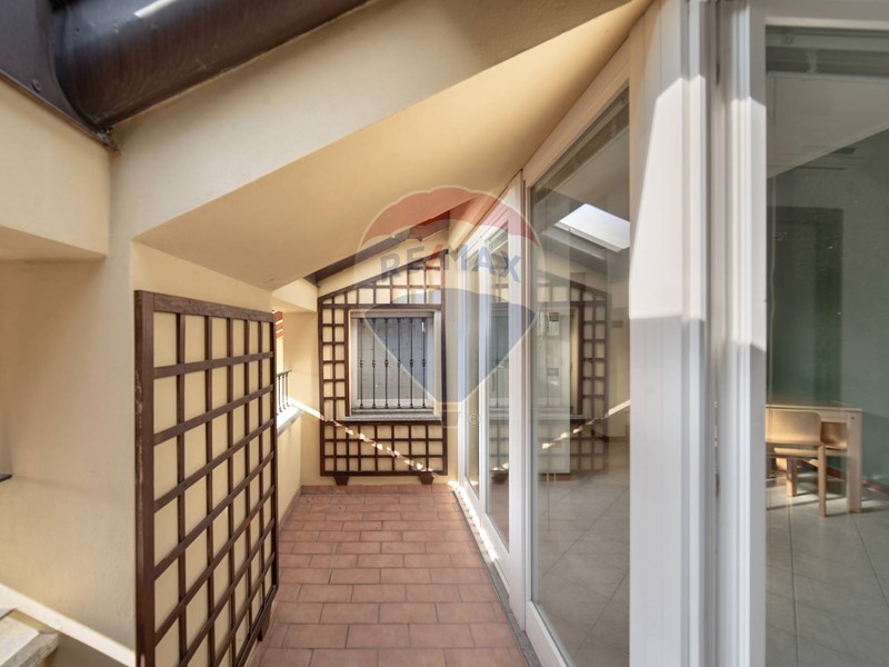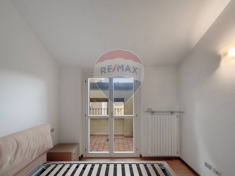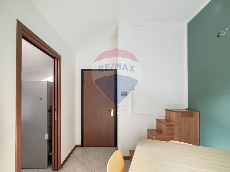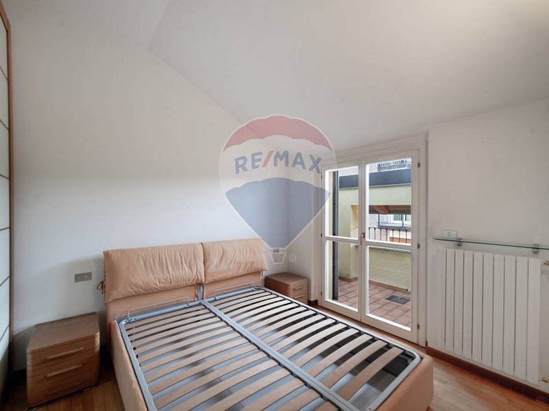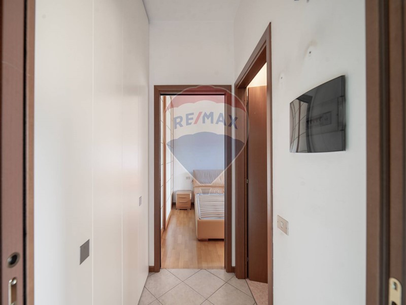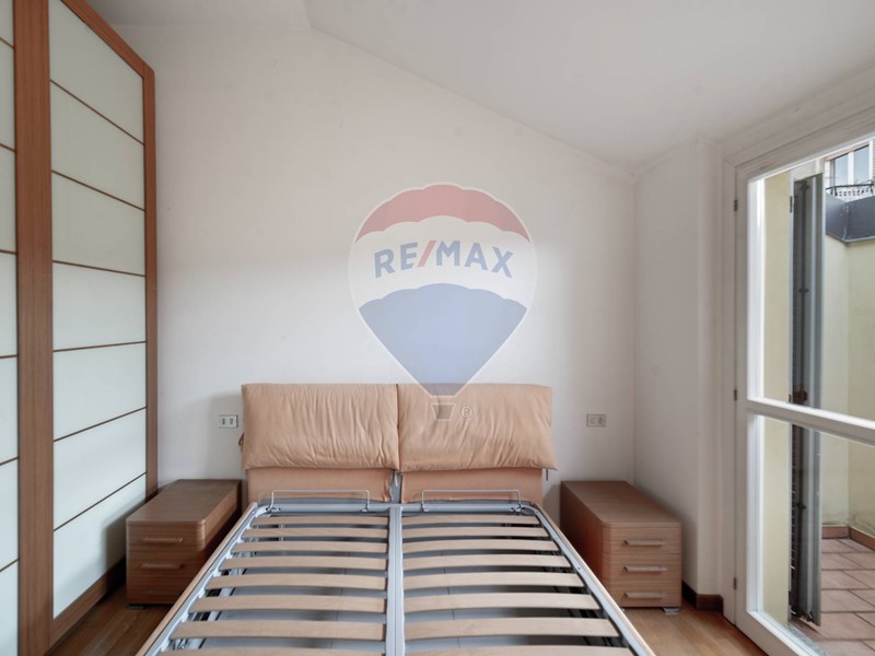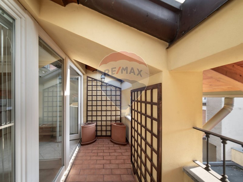 La cucina, separata e particolarmente luminosa, è dotata di due finestre, di cui una con velux motorizzato che garantisce unottima aerazione. Il bagno finestrato è completo di vasca con doccia, mentre il disimpegno ospita un pratico armadio a muro realizzato su misura. La camera matrimoniale, spaziosa e accogliente, dispone di un ulteriore balcone che rende lambiente arioso e luminoso.