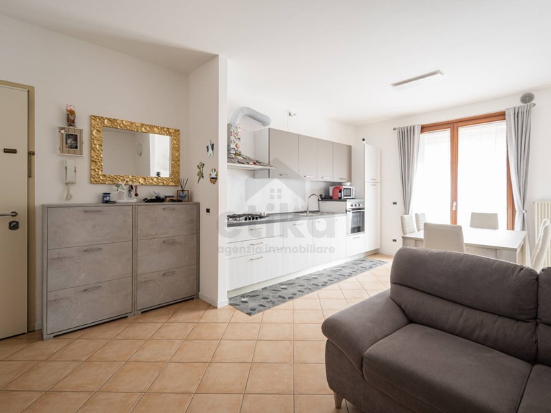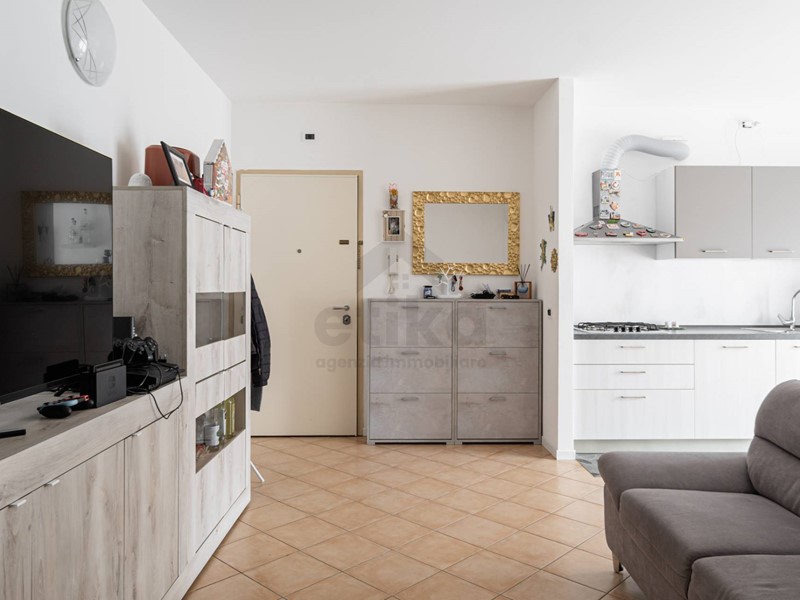 ingresso sull'ampia e luminosissima zona giorno open space, qui troviamo cucina a vista con accesso al terrazzo (ampio e che gode di un'ottima esposizione a SUD) e graziosissimo salotto.