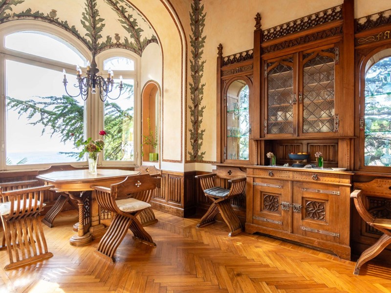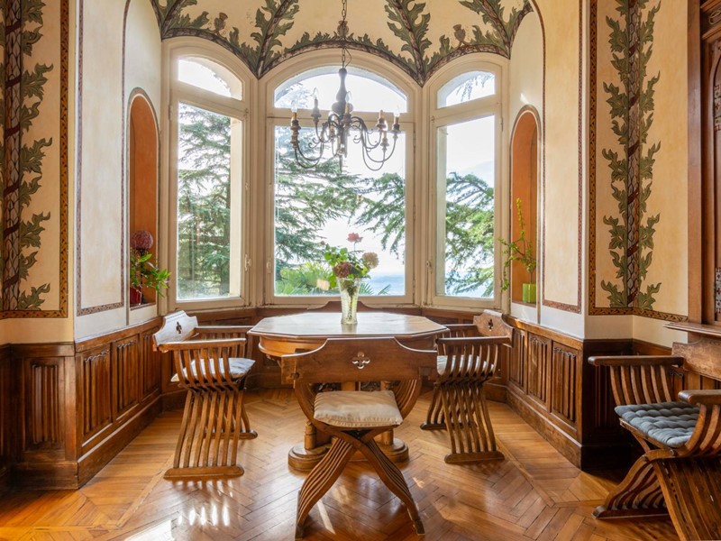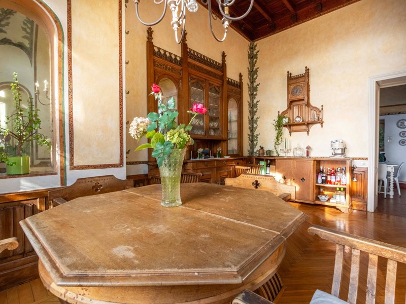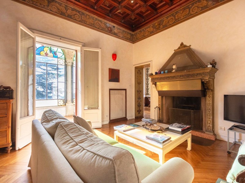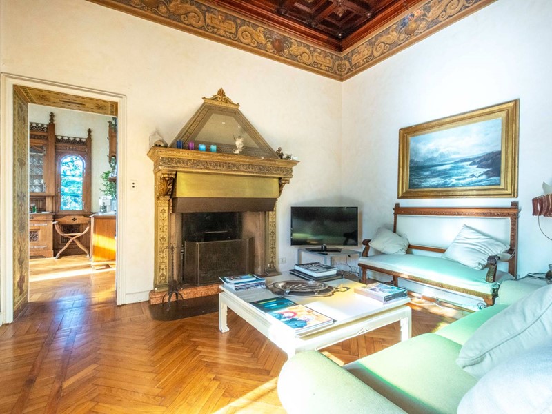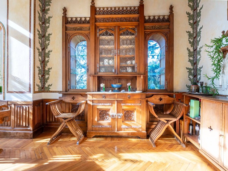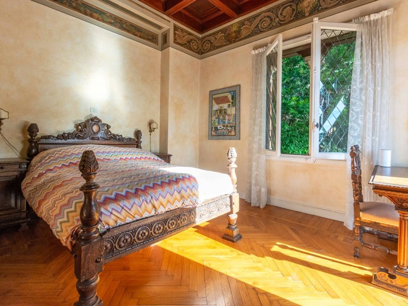 Nel cuore della frazione storica di Santa Maria del Monte, proponiamo in vendita in esclusiva una signorile villa Liberty dei primi del Novecento, progettata da Lodovico Pogliaghi. Limmobile, circondato dal verde e da un parco privato di ca. 11.000 mq con alberi secolari e apparati scultorei depoca, conserva il fascino originario grazie a finiture dautore (affreschi, soffitti a cassettoni, bifore, archi tondi e acuti) armonizzate con una funzionale distribuzione degli spazi. La presenza della torretta belvedere e della veranda vetrata affacciata verso valle valorizza la vista e la luminosità degli ambienti.