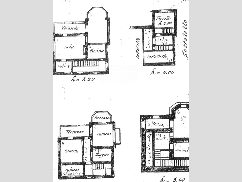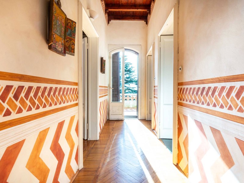 Piano Terra: atrio dingresso, salone di rappresentanza con camino e soffitti a cassettoni, veranda con vetrate decorate, bow-window collegato a cucina pratica e funzionale, disimpegni e servizi.