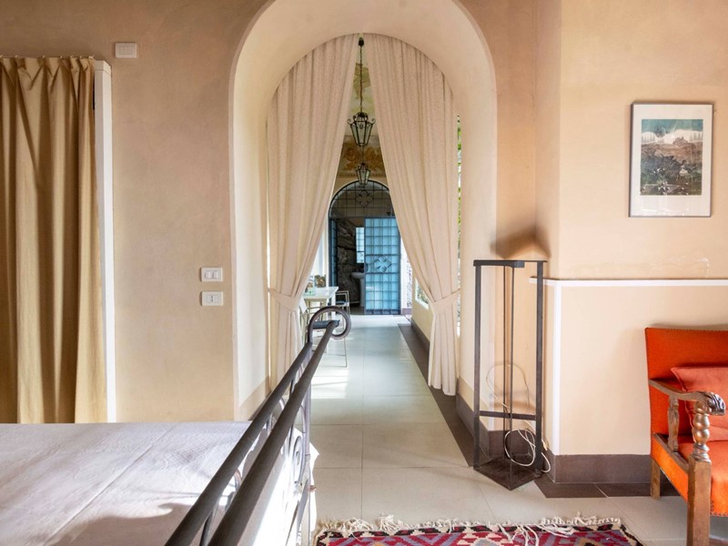 Piano Primo: camere con terrazzo privato, bagno in marmo verde di taglio signorile, ulteriore camera/studio, pavimenti in parquet.