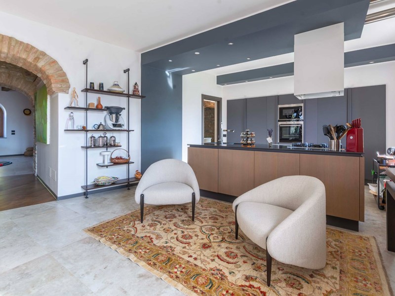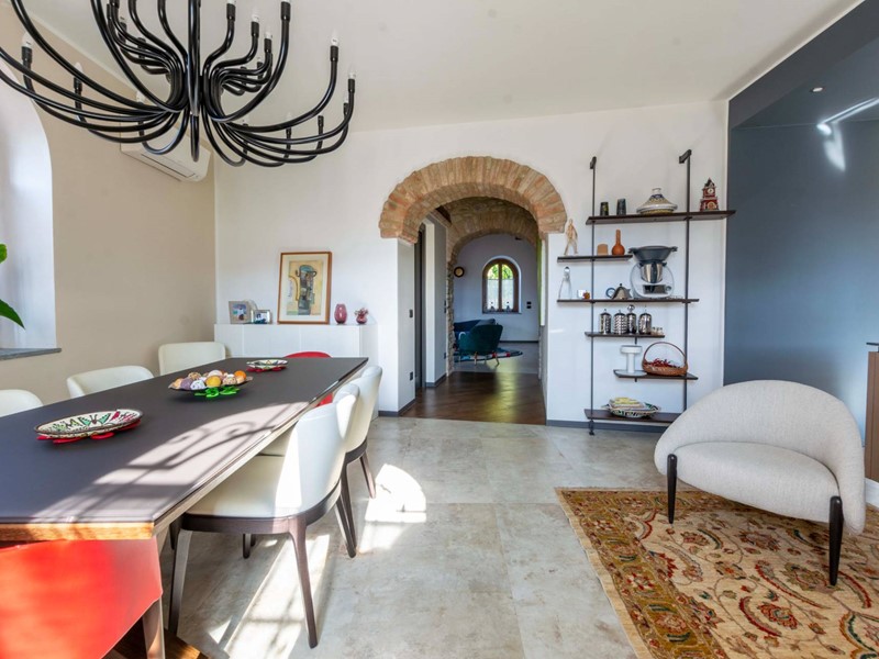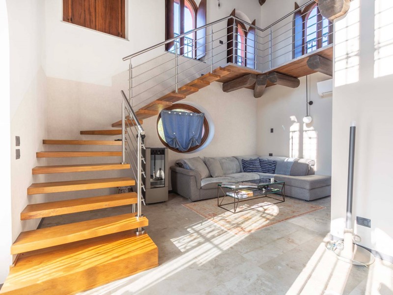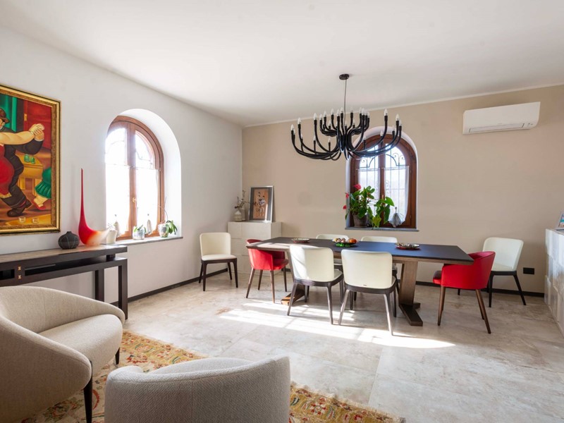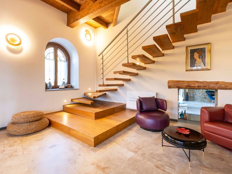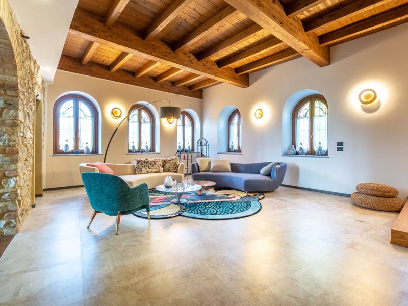 La residenza si sviluppa su più livelli: due piani fuori terra, un piano seminterrato e un livello sotterraneo con scenografiche cantine a volta. Limpianto architettonico, sapientemente valorizzato, conserva colonne e pareti in pietra originali, soffitti a volta e mattoni a vista, perfettamente integrati con soluzioni tecniche e impiantistiche davanguardia.