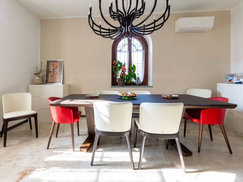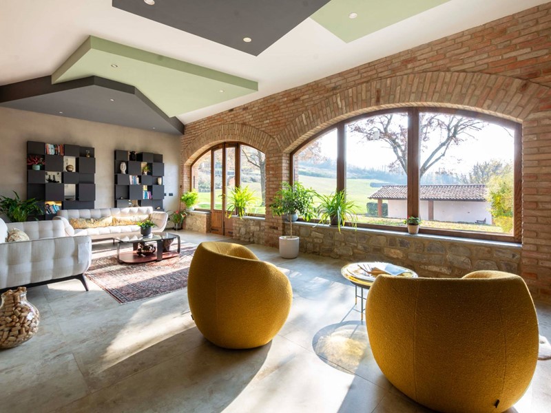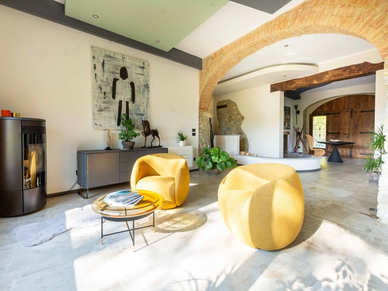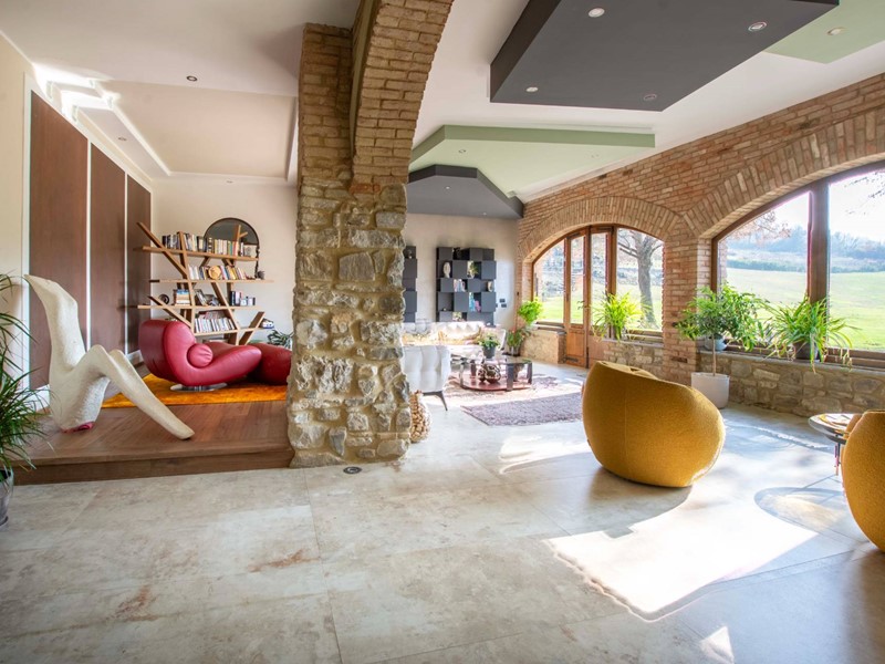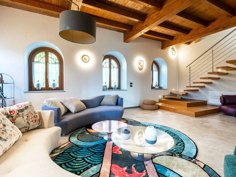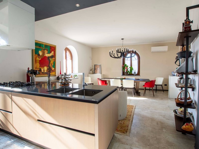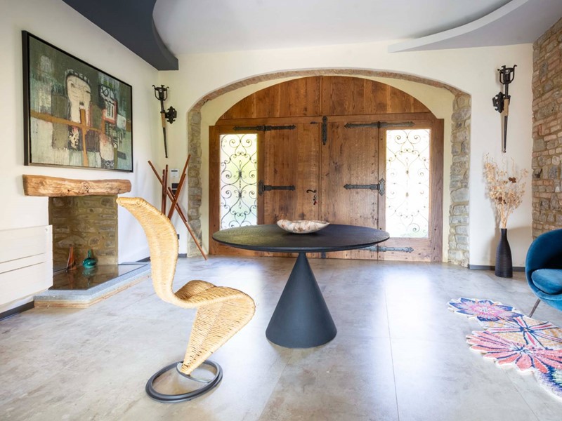 La residenza si sviluppa su più livelli: due piani fuori terra, un piano seminterrato e un livello sotterraneo con scenografiche cantine a volta. Limpianto architettonico, sapientemente valorizzato, conserva colonne e pareti in pietra originali, soffitti a volta e mattoni a vista, perfettamente integrati con soluzioni tecniche e impiantistiche davanguardia.