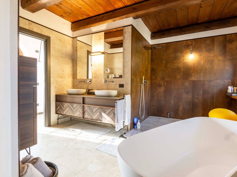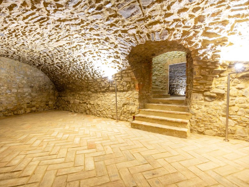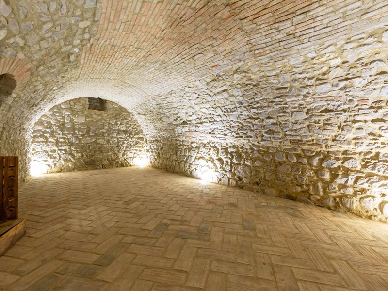 Nel piano seminterrato è collocata unelegante zona benessere con piscina, concepita per offrire momenti di relax in un contesto esclusivo. Scendendo ancora si accede al livello più profondo, dove sono presenti il pozzo e le suggestive cantine a volta in pietra, ambienti di grande fascino che si prestano perfettamente a essere utilizzati come wine cellar, area degustazione o spazio conviviale di grande atmosfera.